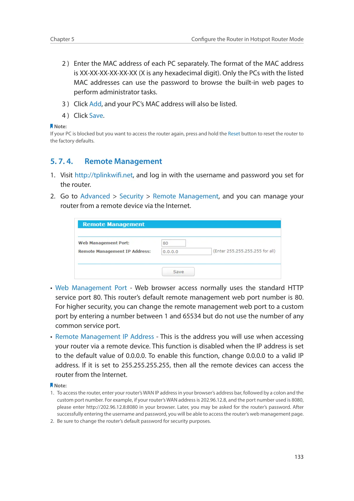2. Go to Advanced > Security > Remote Management, and you can manage your