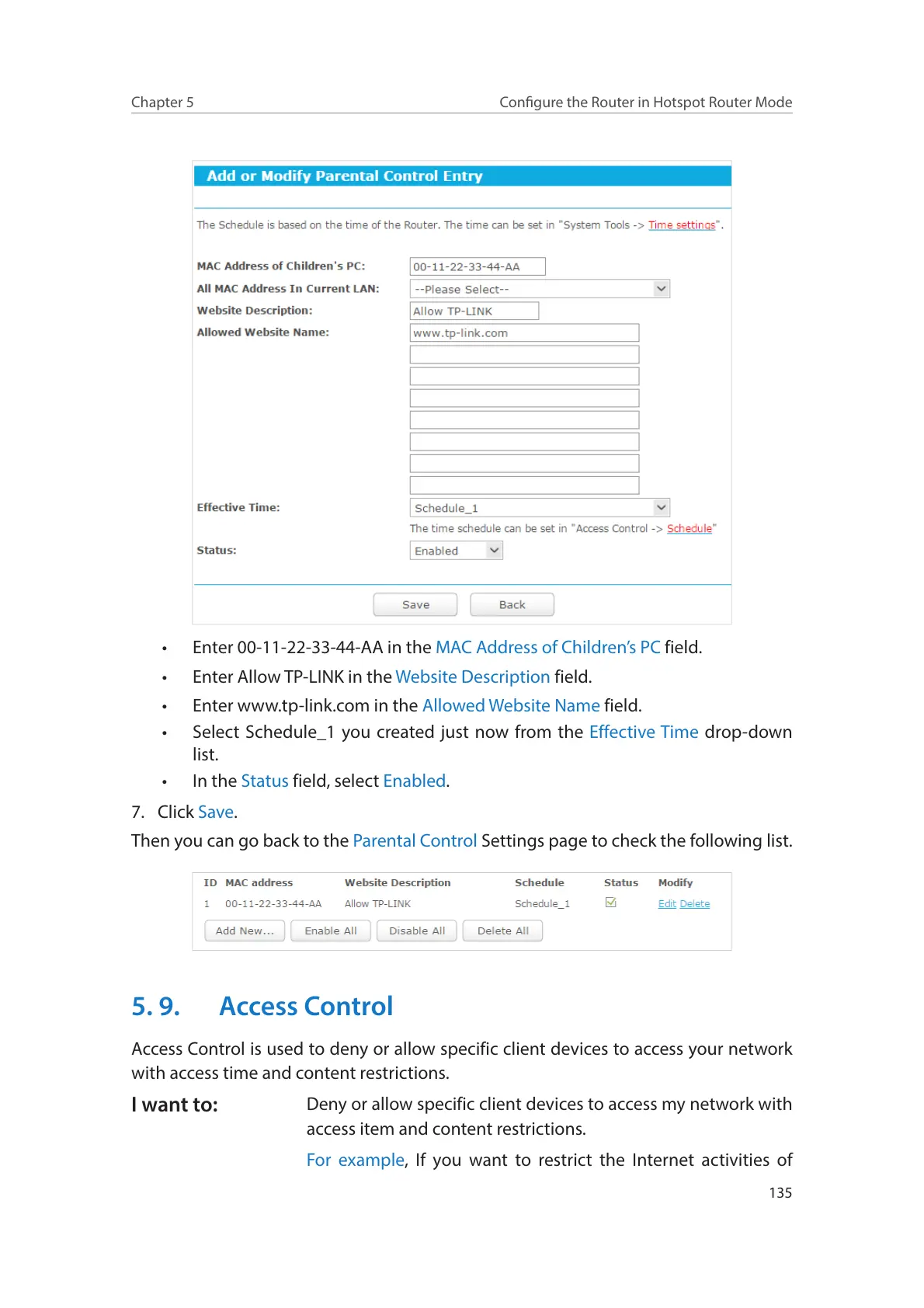 • Enter 00-11-22-33-44-AA in the MAC Address of Children’s PC field.