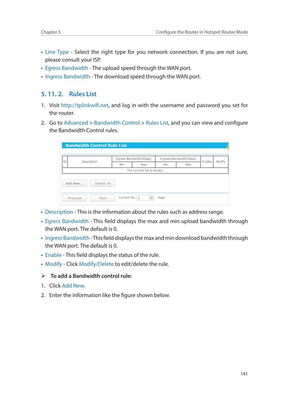 2. Go to Advanced > Bandwidth Control > Rules List, and you can view and configure