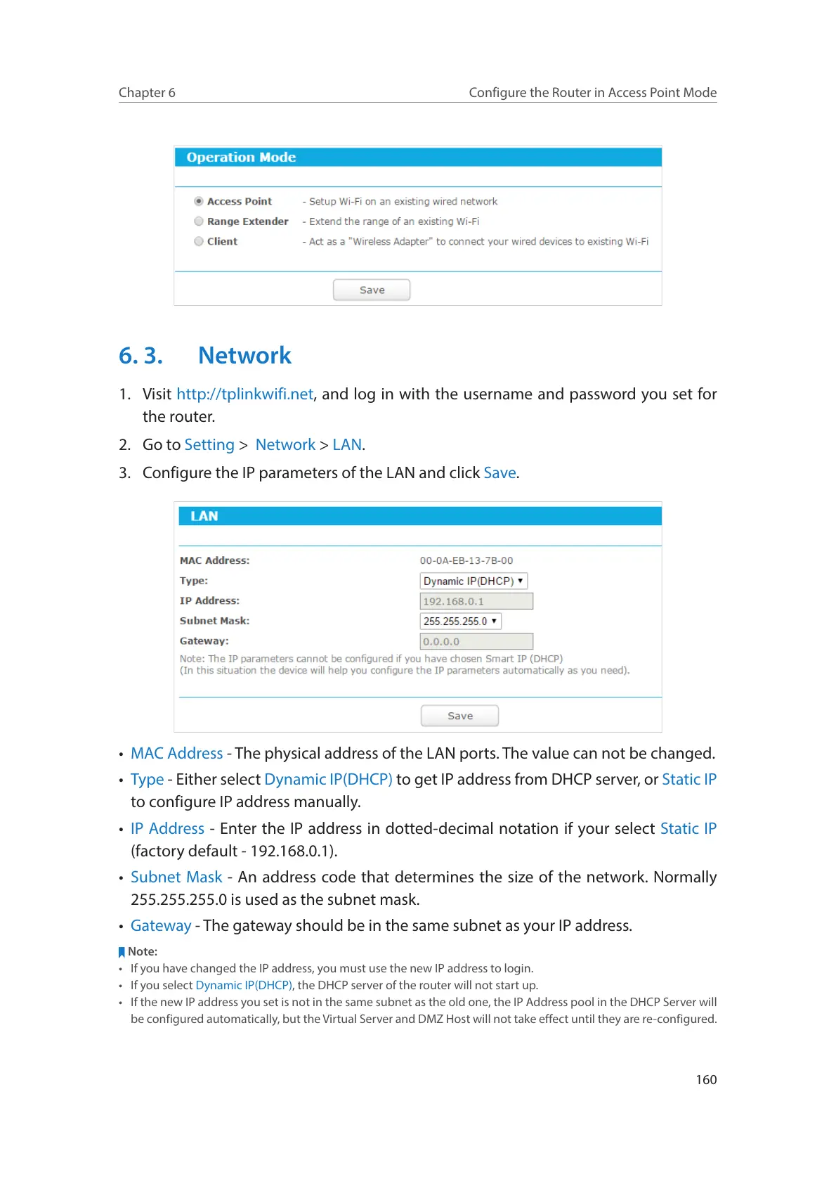 • MAC Address - The physical address of the LAN ports. The value can not be changed.