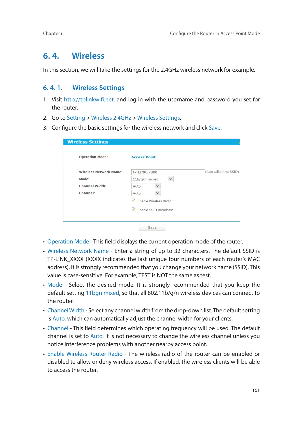 6. 4. 1. Wireless Settings