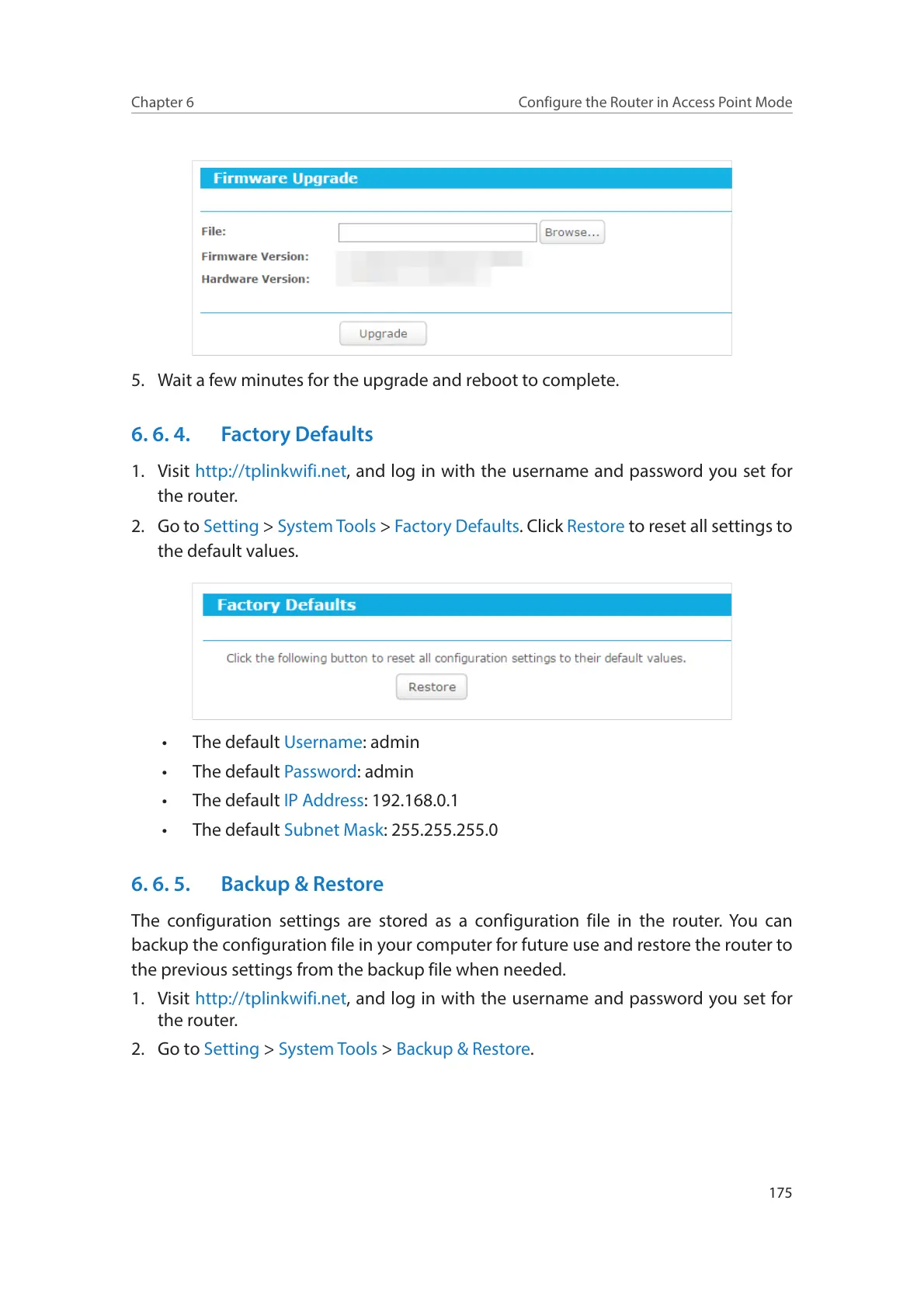 2. Go to Setting > System Tools > Factory Defaults. Click Restore to reset all settings to