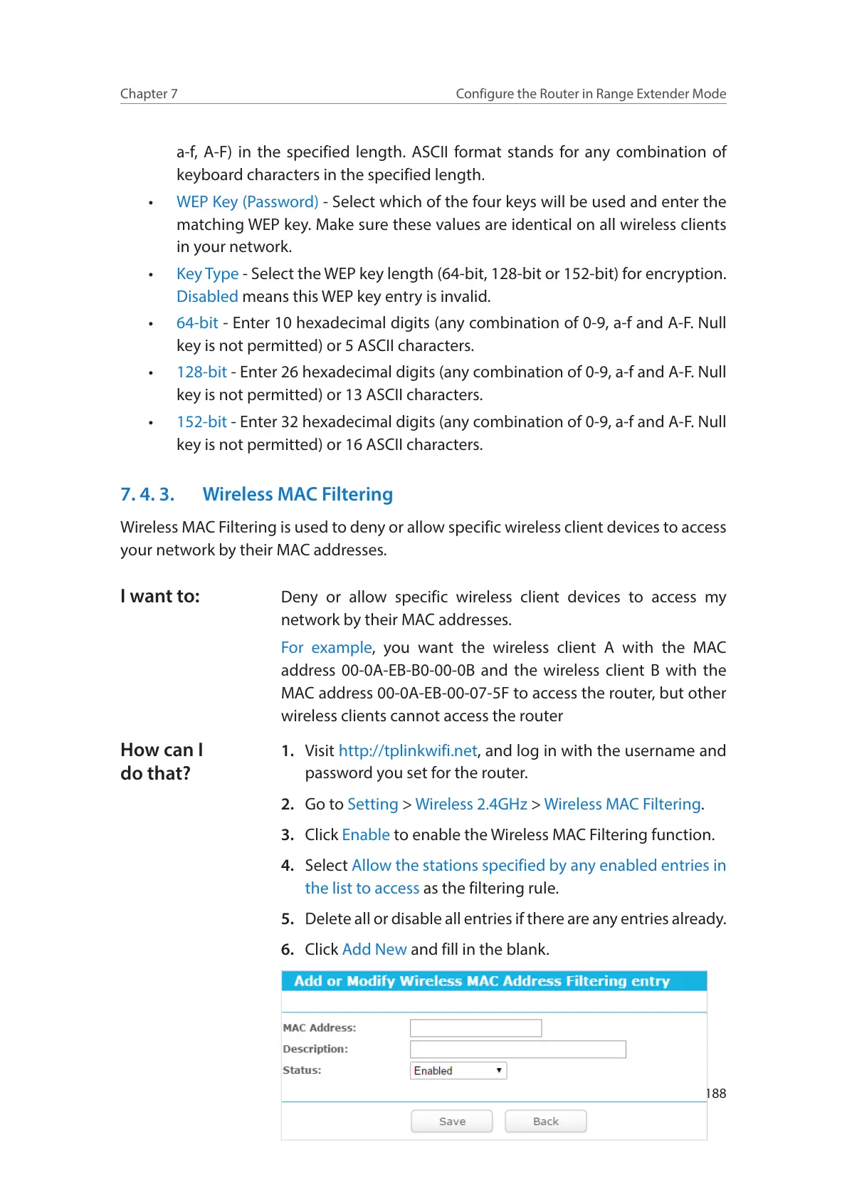 3. Click Enable to enable the Wireless MAC Filtering function.