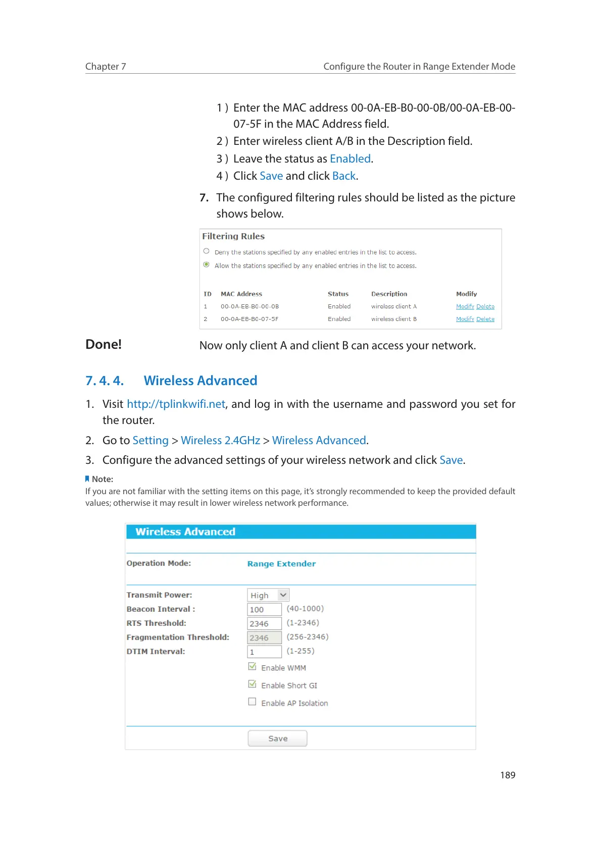 2. Go to Setting > Wireless 2.4GHz > Wireless Advanced.