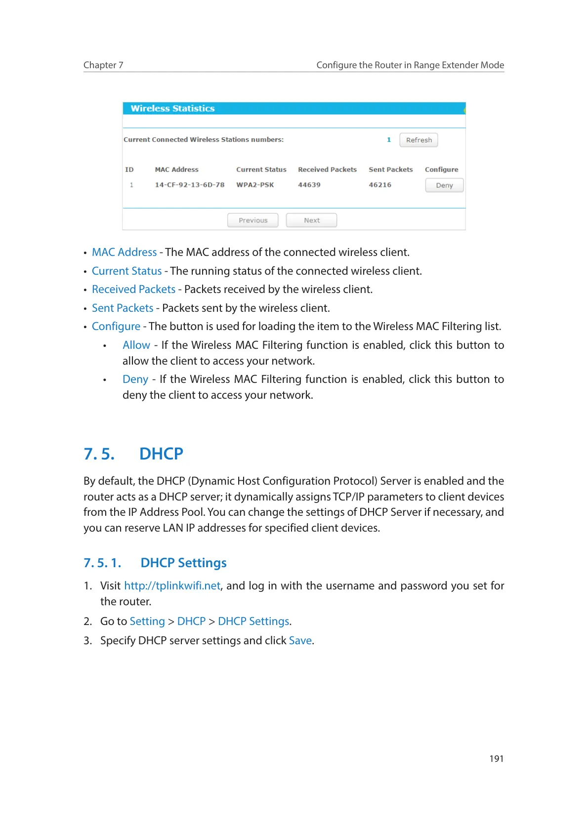 7. 5. 1. DHCP Settings