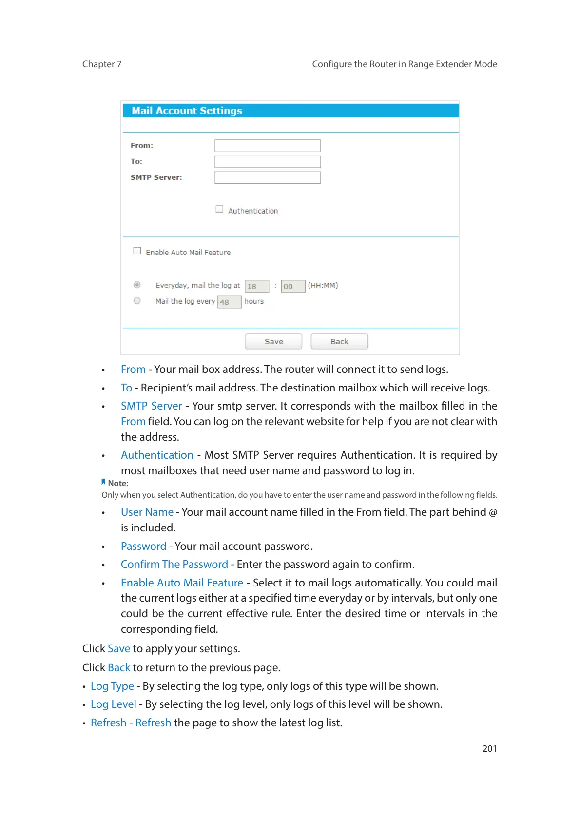 • To - Recipient’s mail address. The destination mailbox which will receive logs.
