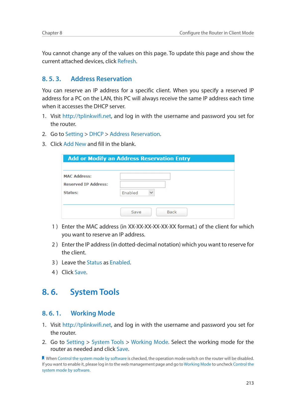 You can reserve an IP address for a specific client. When you specify a reserved IP