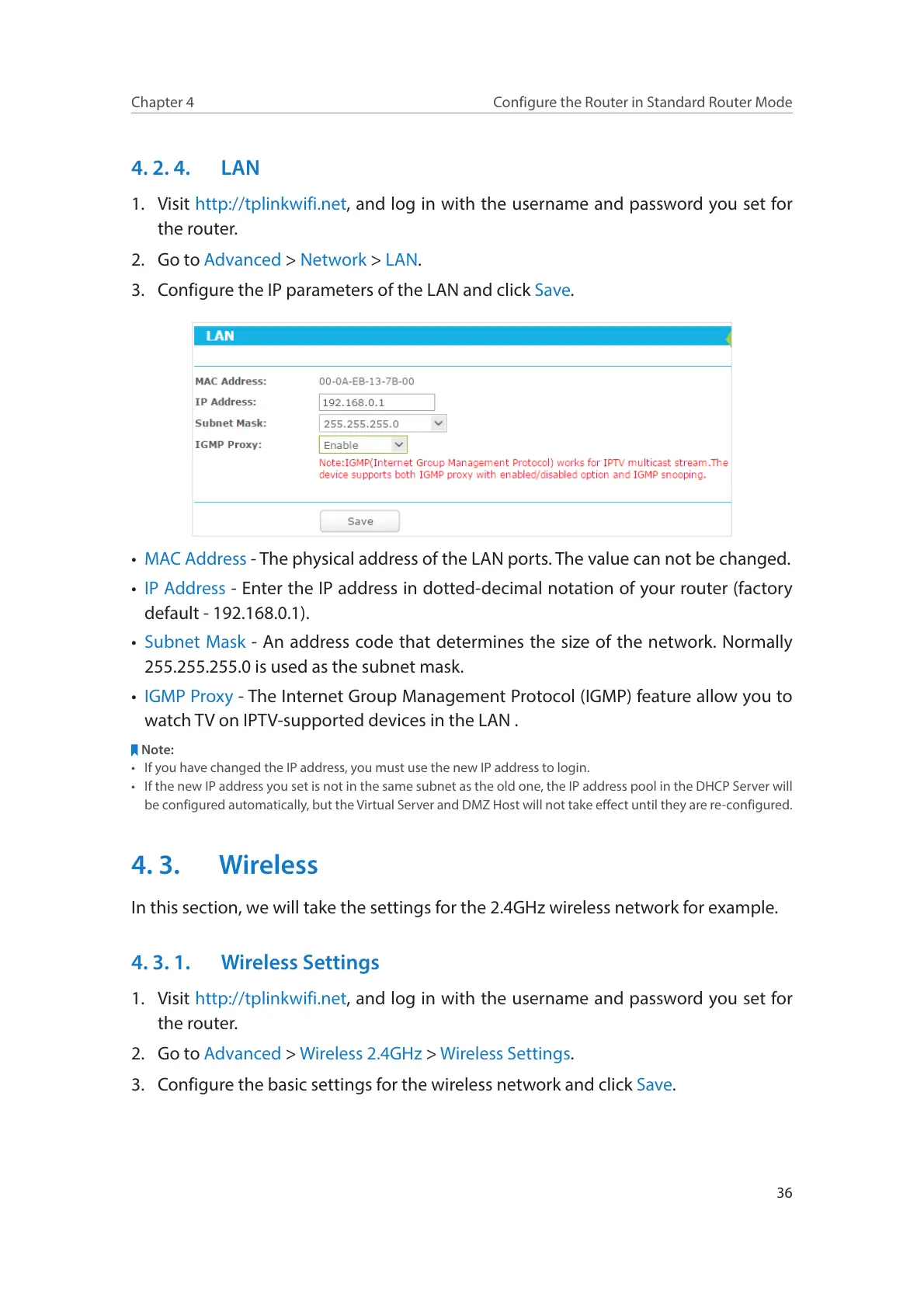 In this section, we will take the settings for the 2.4GHz wireless network for example.