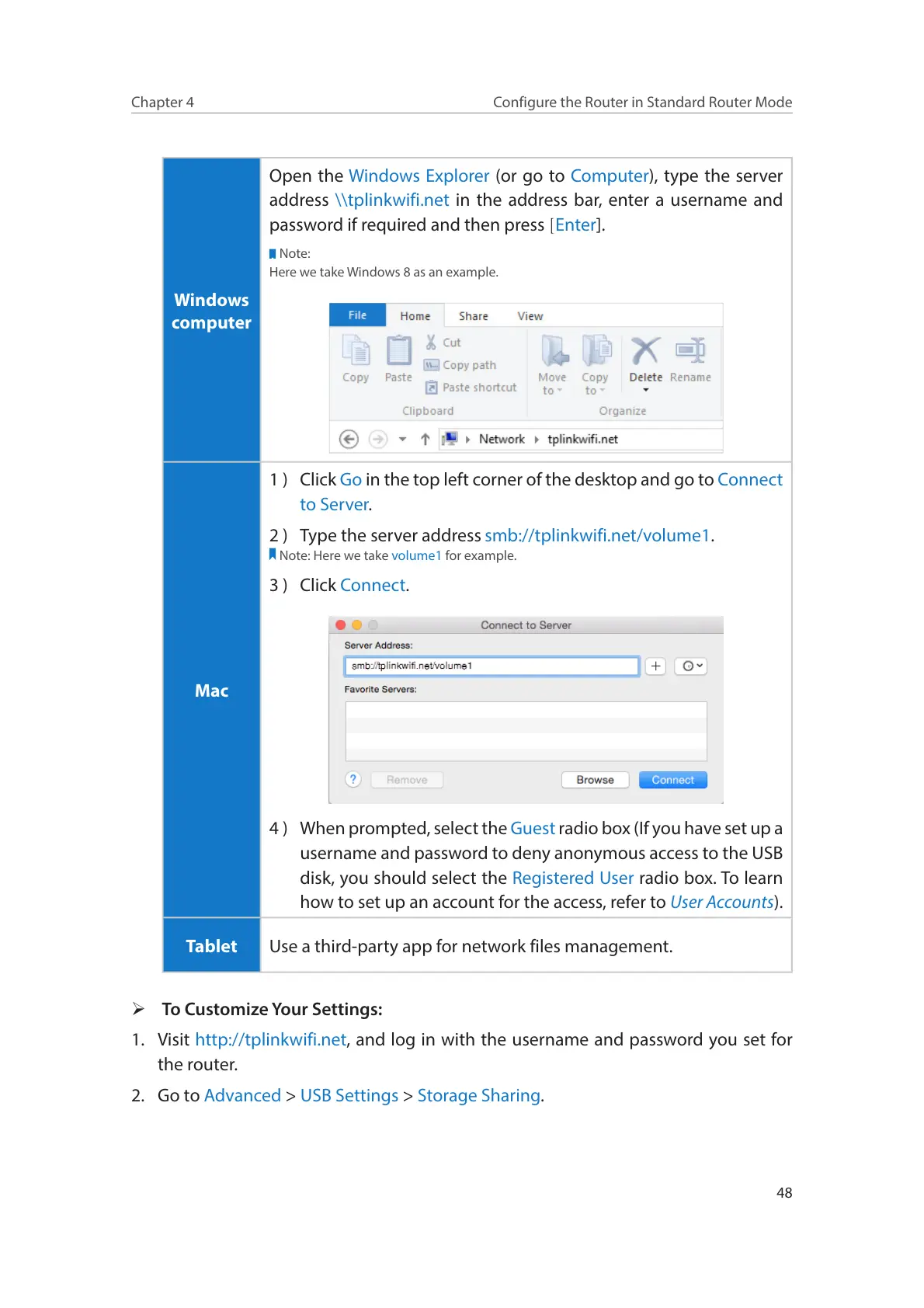 2 ) Type the server address smb://tplinkwifi.net/volume1.