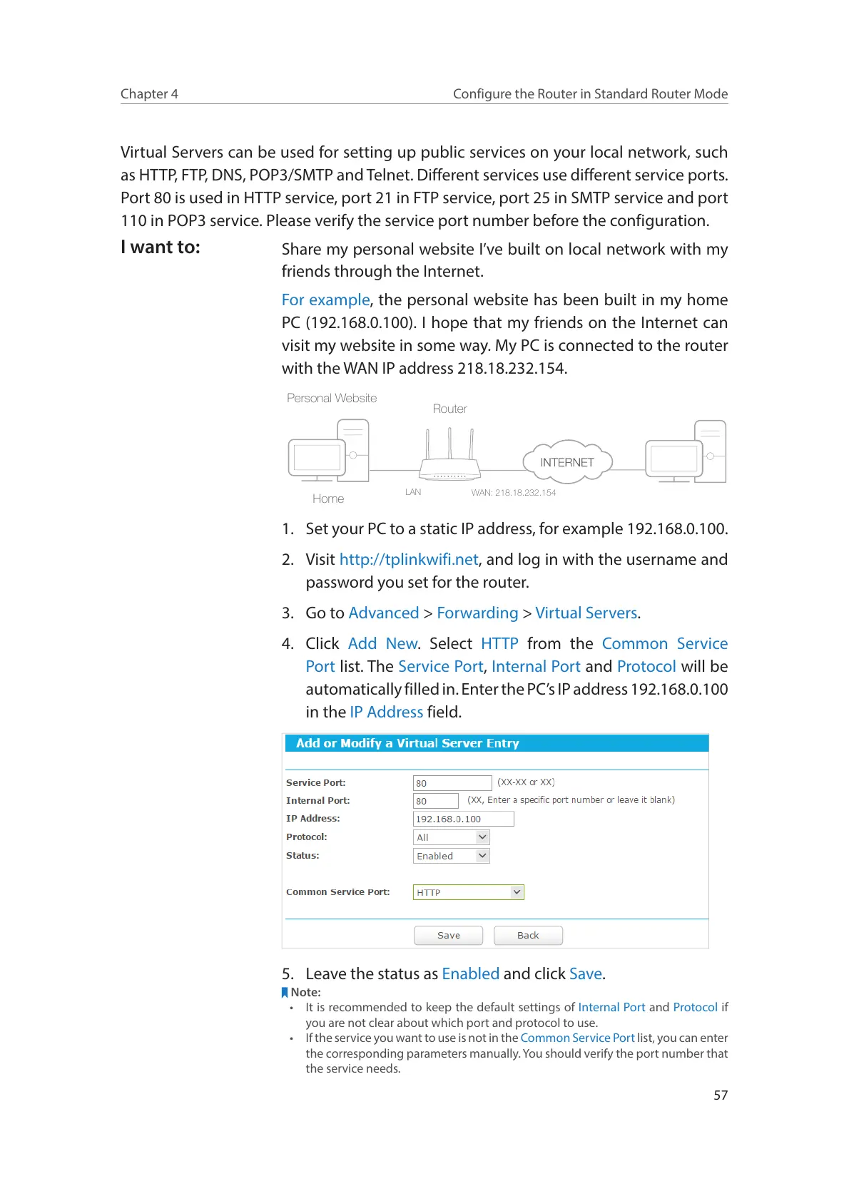 3. Go to Advanced > Forwarding > Virtual Servers.
