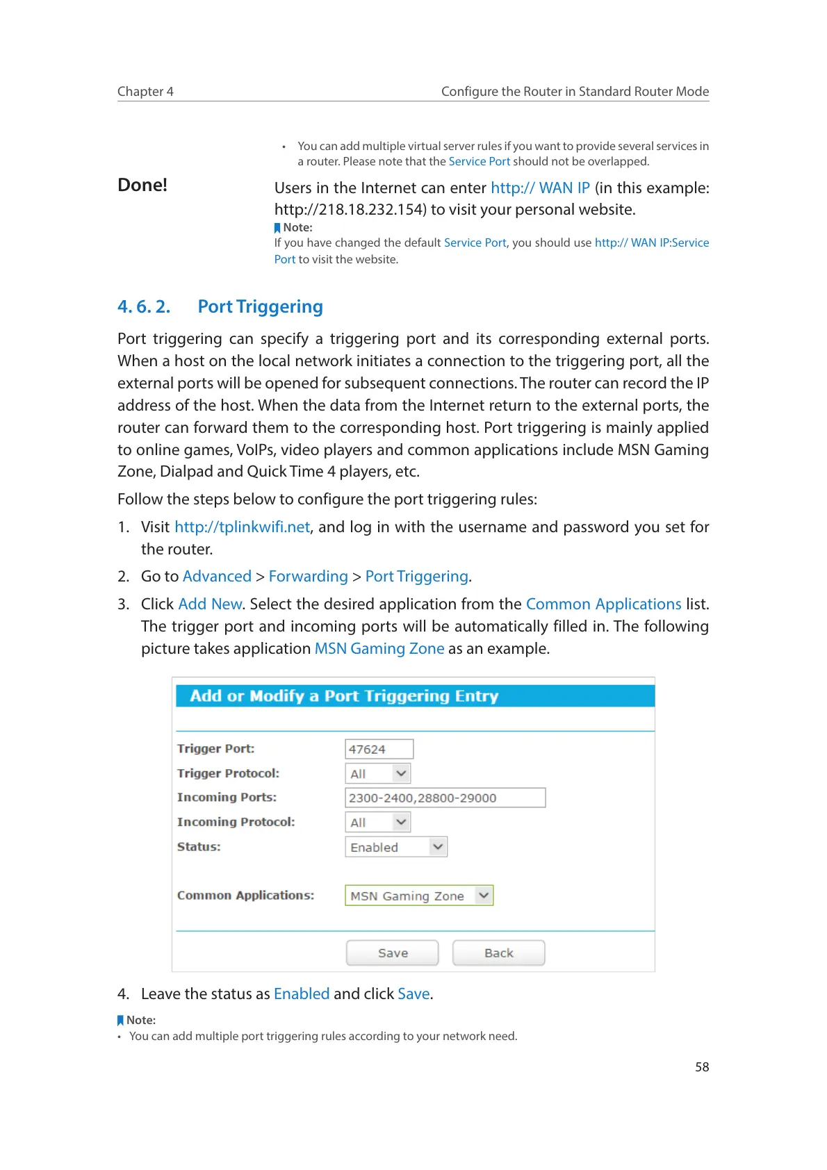 router can forward them to the corresponding host. Port triggering is mainly applied