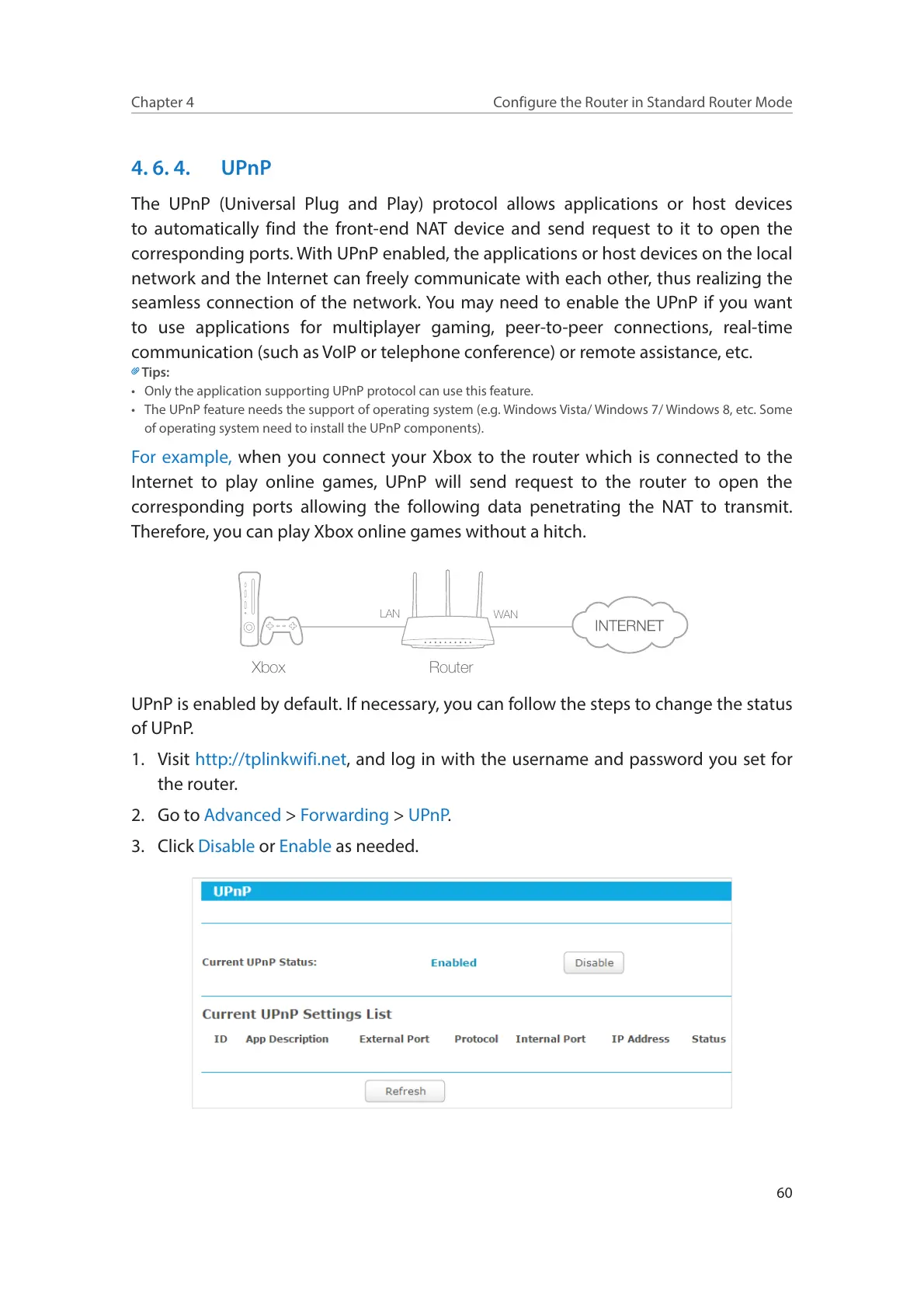 UPnP is enabled by default. If necessary, you can follow the steps to change the status