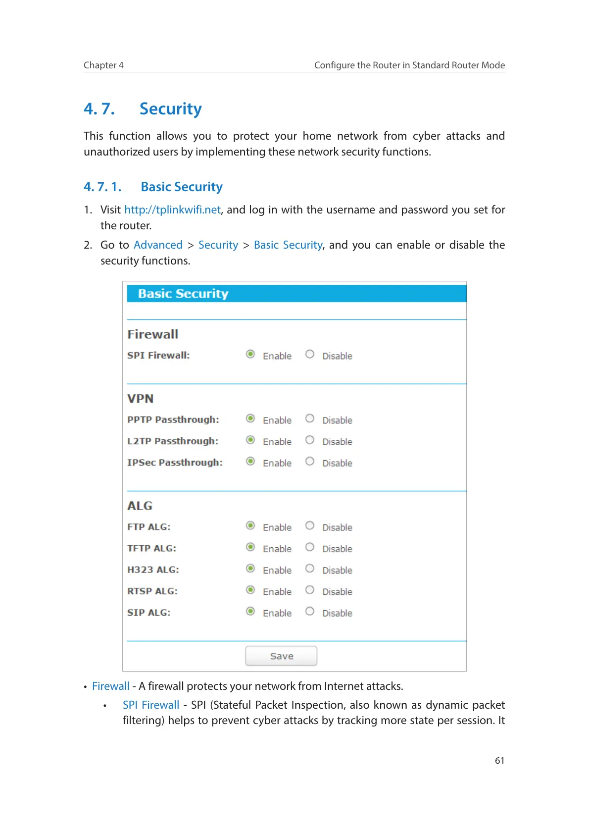 2. Go to Advanced > Security > Basic Security, and you can enable or disable the
