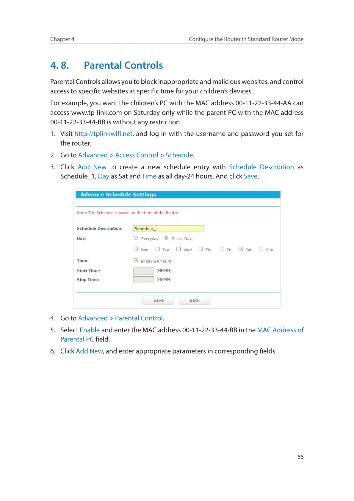 access www.tp-link.com on Saturday only while the parent PC with the MAC address