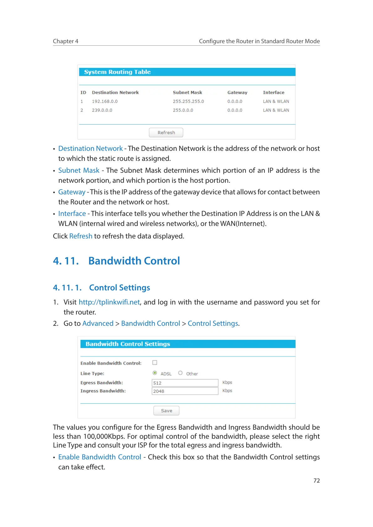 • Enable Bandwidth Control - Check this box so that the Bandwidth Control settings