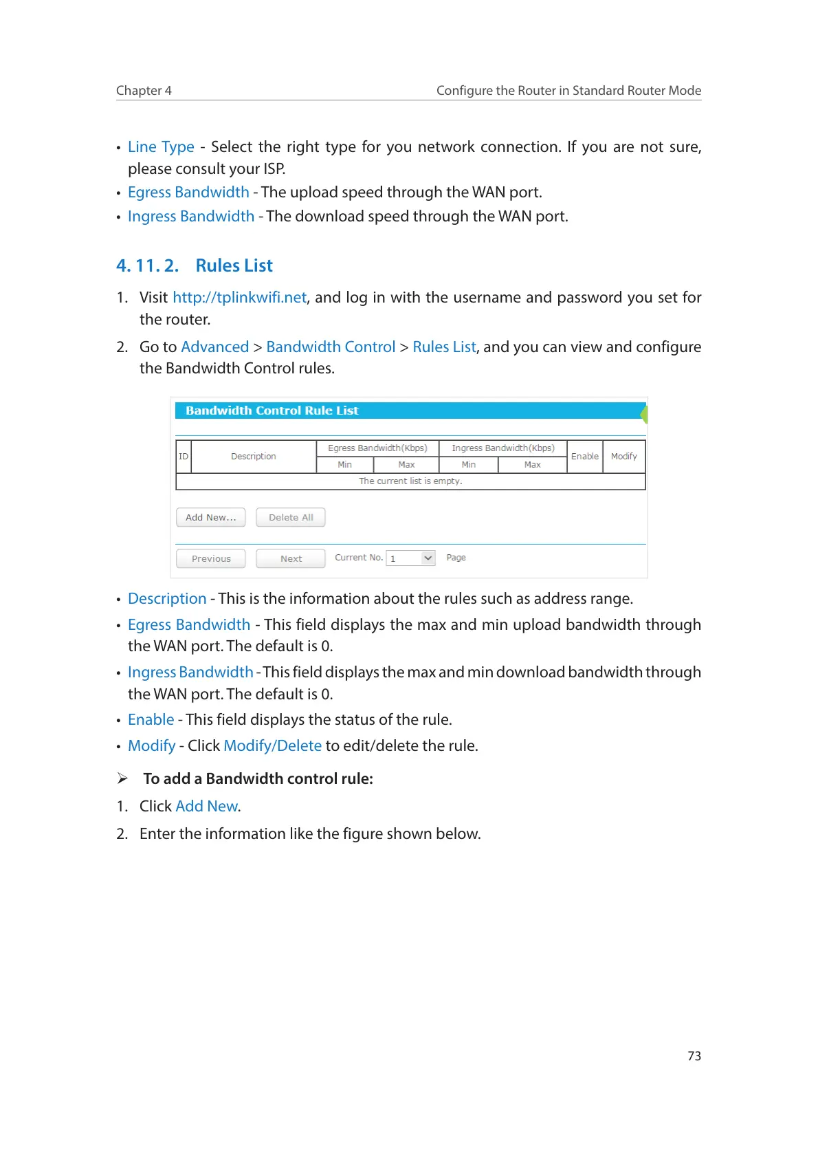 2. Go to Advanced > Bandwidth Control > Rules List, and you can view and configure