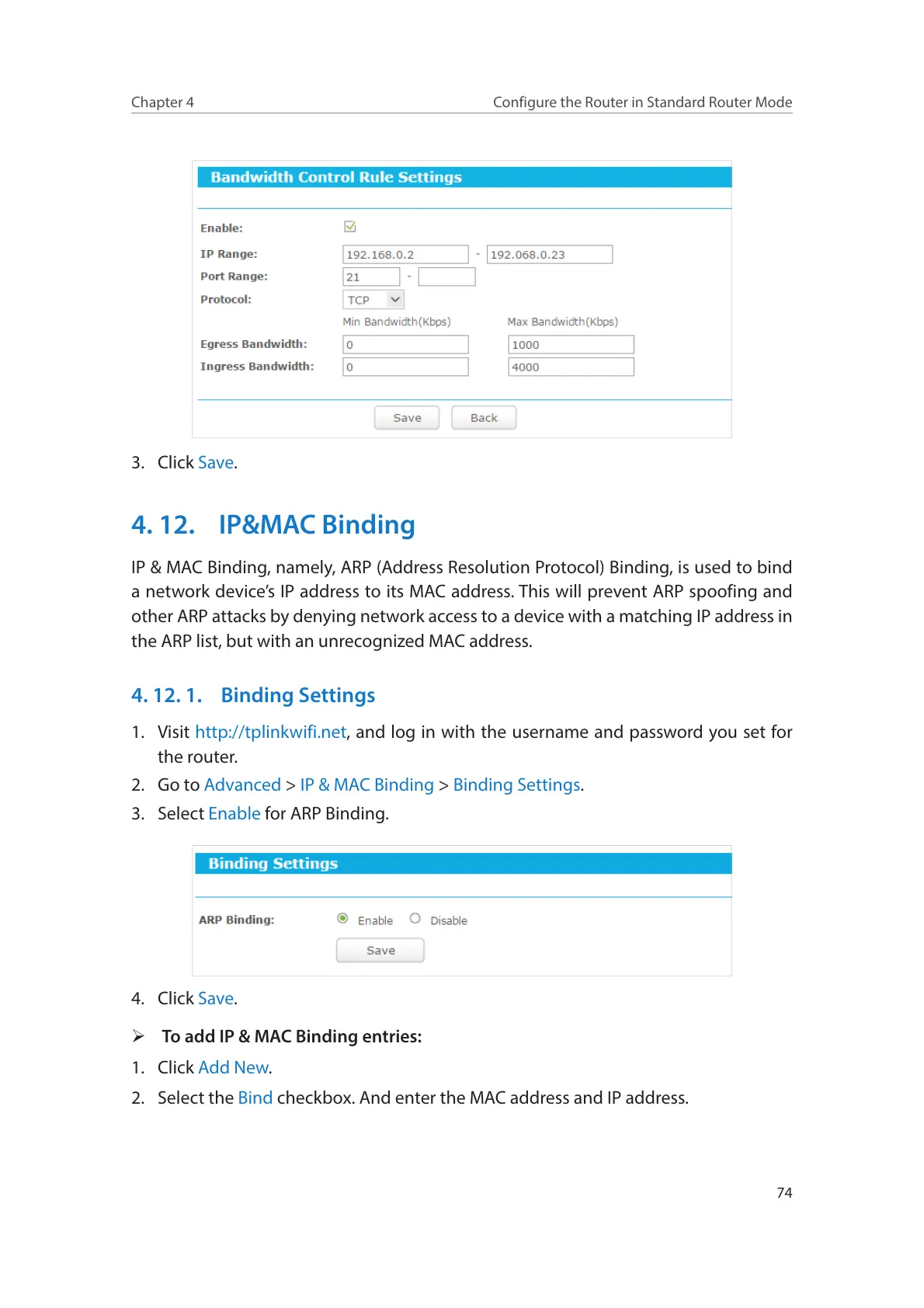 2. Go to Advanced > IP & MAC Binding > Binding Settings.