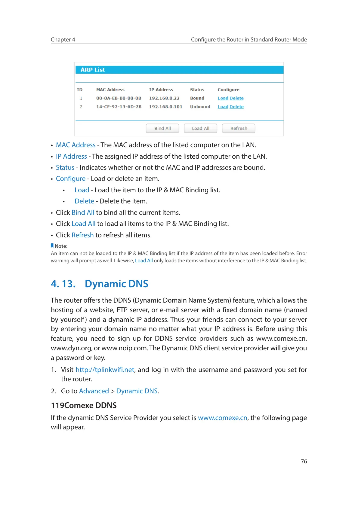 warning will prompt as well. Likewise, Load All only loads the items without interference to the IP & MAC Binding list.
