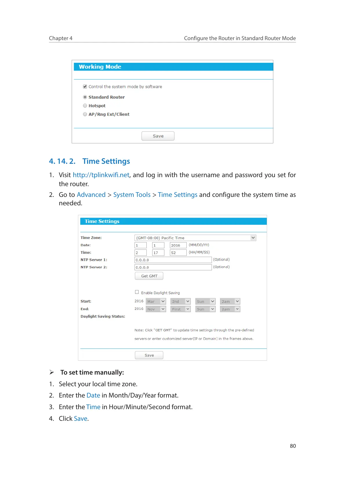 2. Go to Advanced > System Tools > Time Settings and configure the system time as