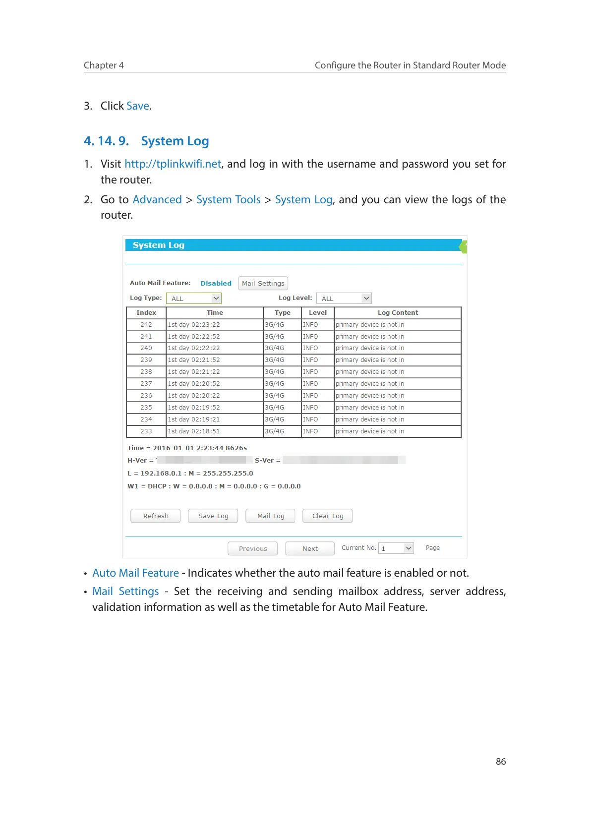 2. Go to Advanced > System Tools > System Log, and you can view the logs of the