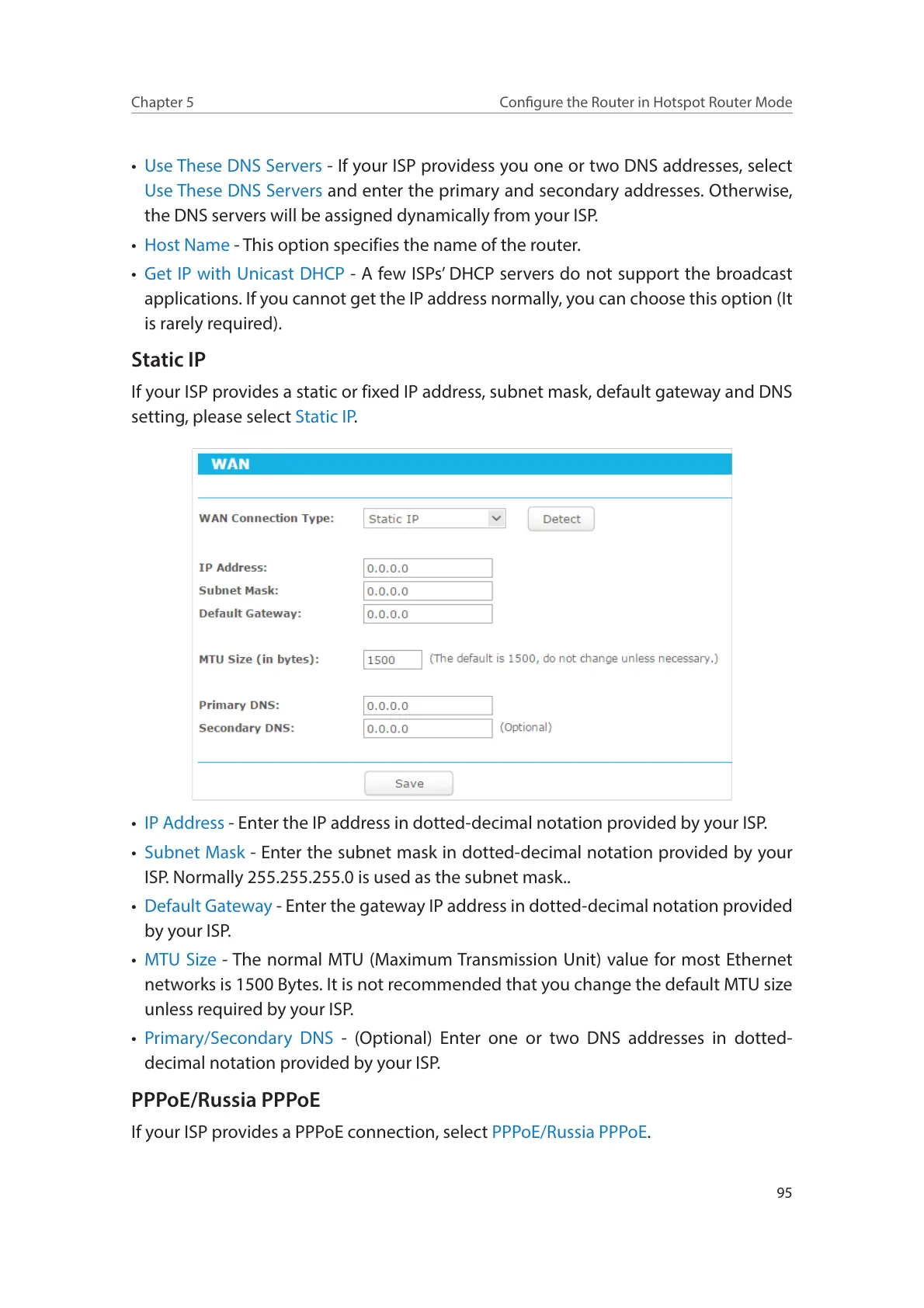 • MTU Size - The normal MTU (Maximum Transmission Unit) value for most Ethernet