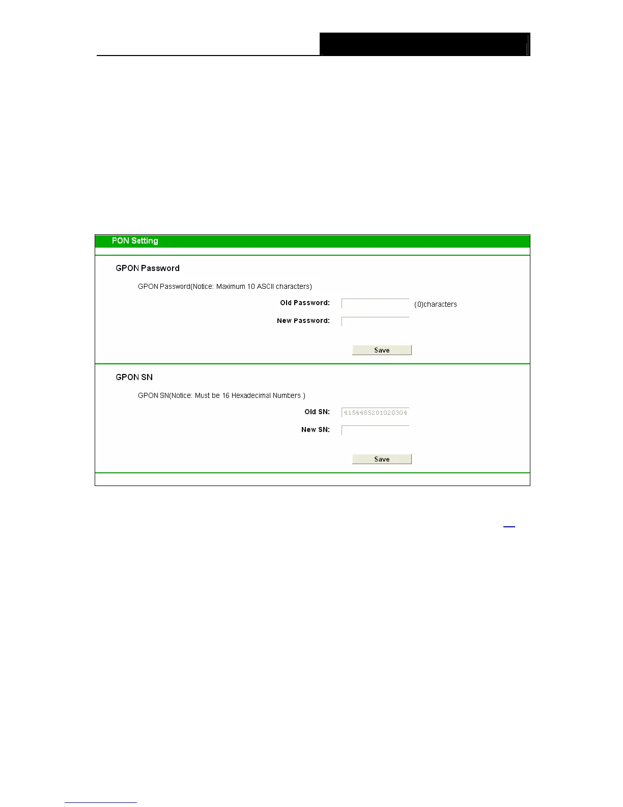 “Network”Æ“PON” to complete the PON setting. You are required to enter GPON SN or