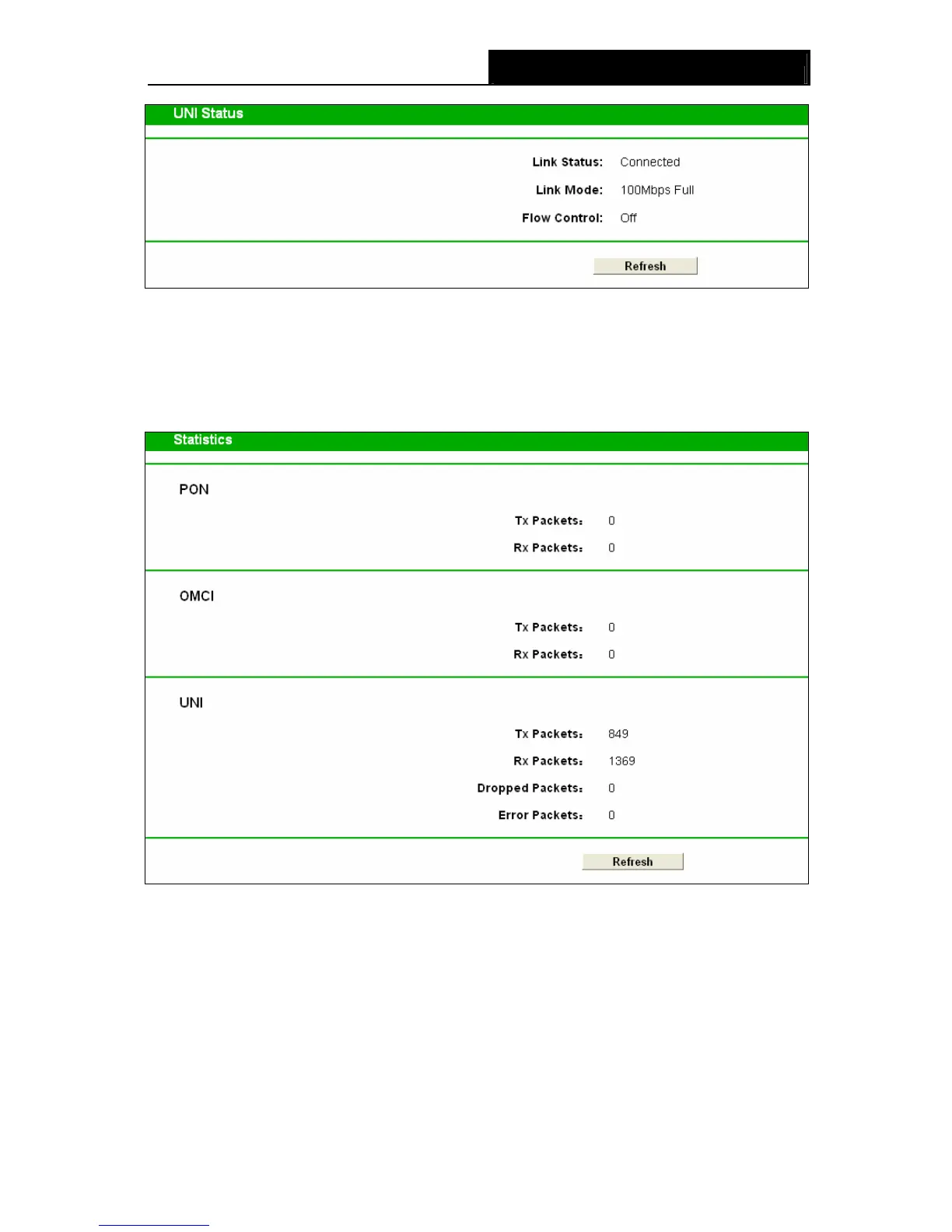 Choose menu “Statistics”, and then you can view the statistics of the ONT as shown in Figure