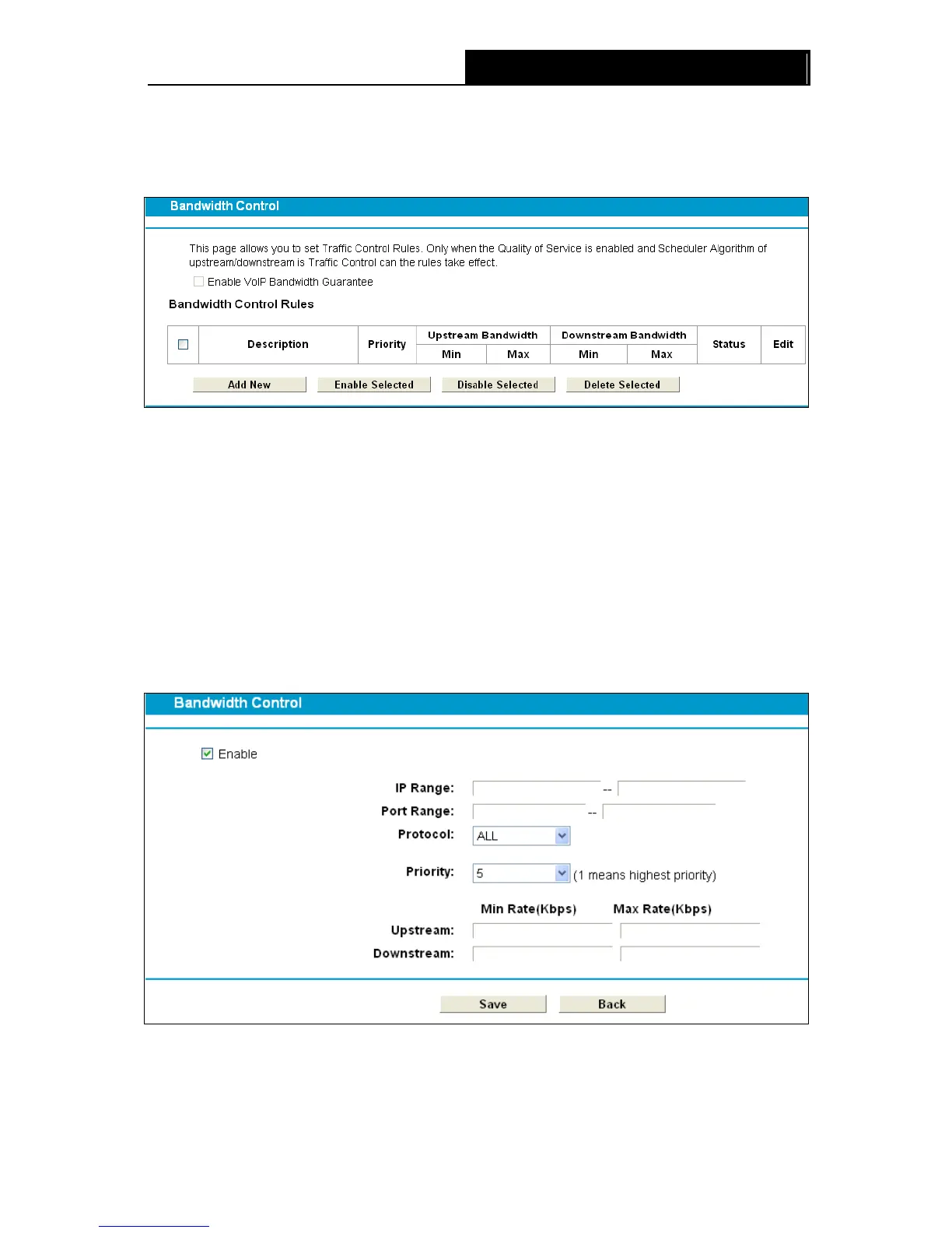 configure the Bandwidth Control rules in the screen below.