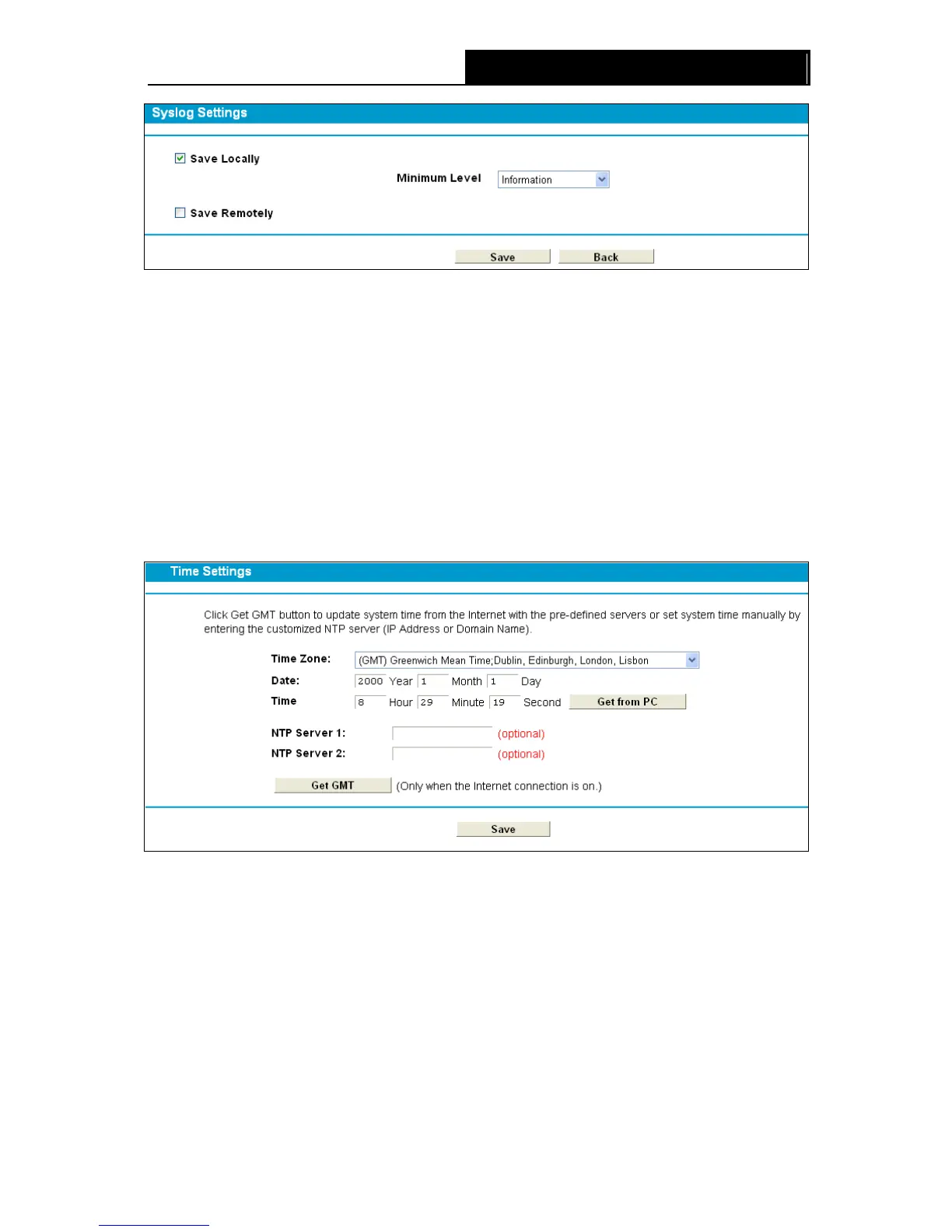 NTP Server 1 / NTP Server 2: Enter the address or domain of the NTP Server 1 or NTP