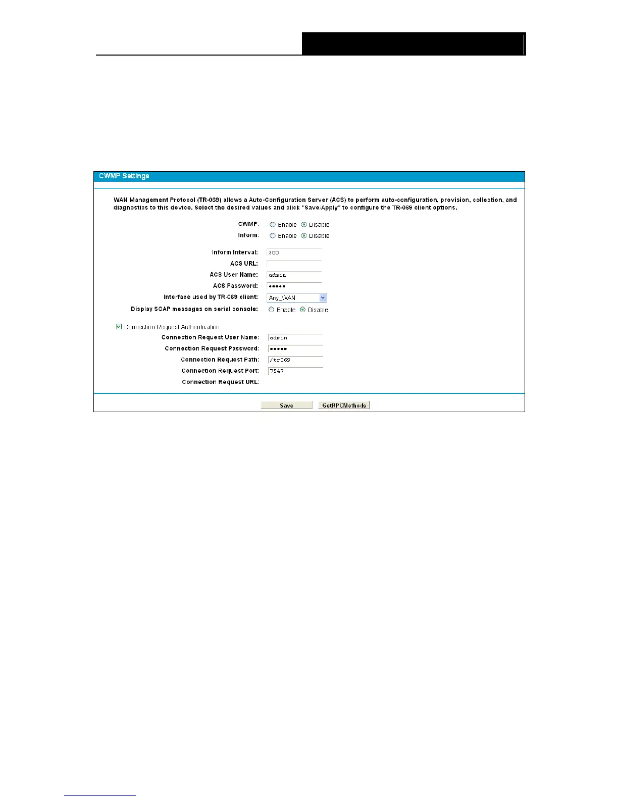 The GPON router offers CWMP feature. The function supports TR-069 protocol which collects