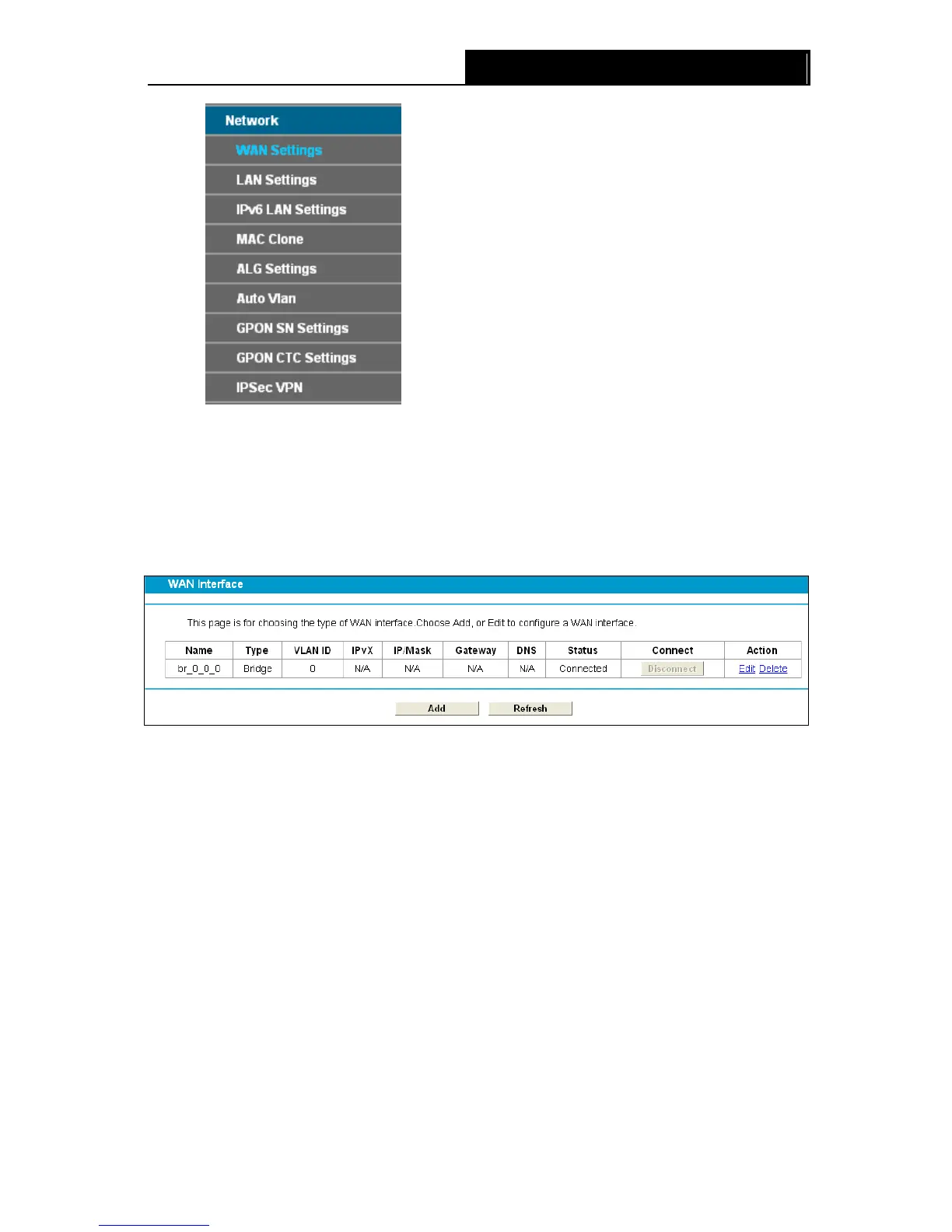 Choose “Network”“WAN Settings”, and you will see the WAN Port Information Table in the