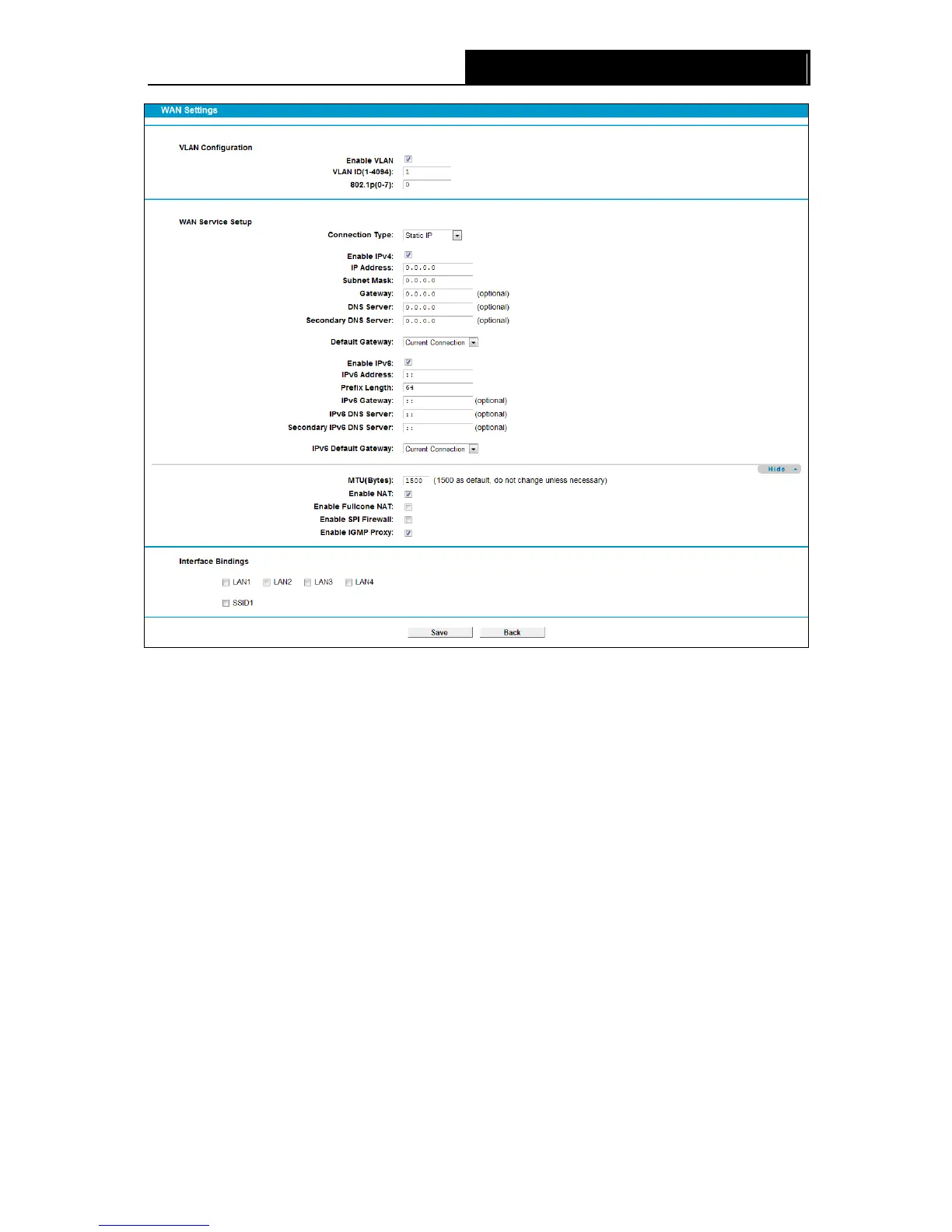 Gateway: Enter the gateway IP address in dotted-decimal notation provided by your ISP.