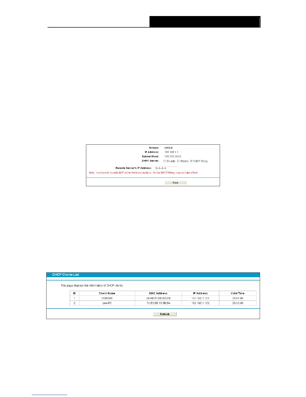 Choose menu “DHCP Server”“Clients List”, you can view the information about the clients
