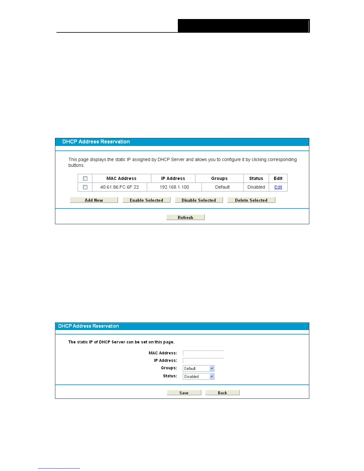 Choose menu “DHCP Server”“Address Reservation”, you can view and add a reserved