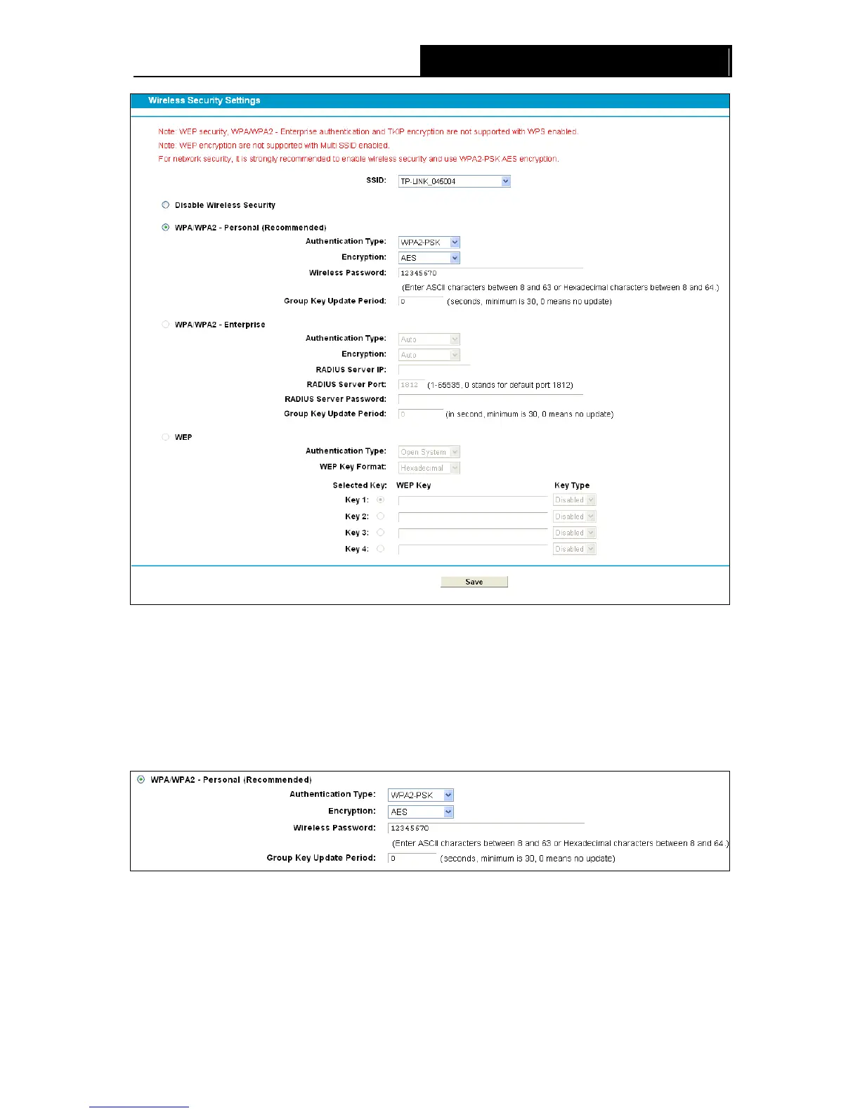 Disable Wireless Security: If you do not want to use wireless security, check this radio