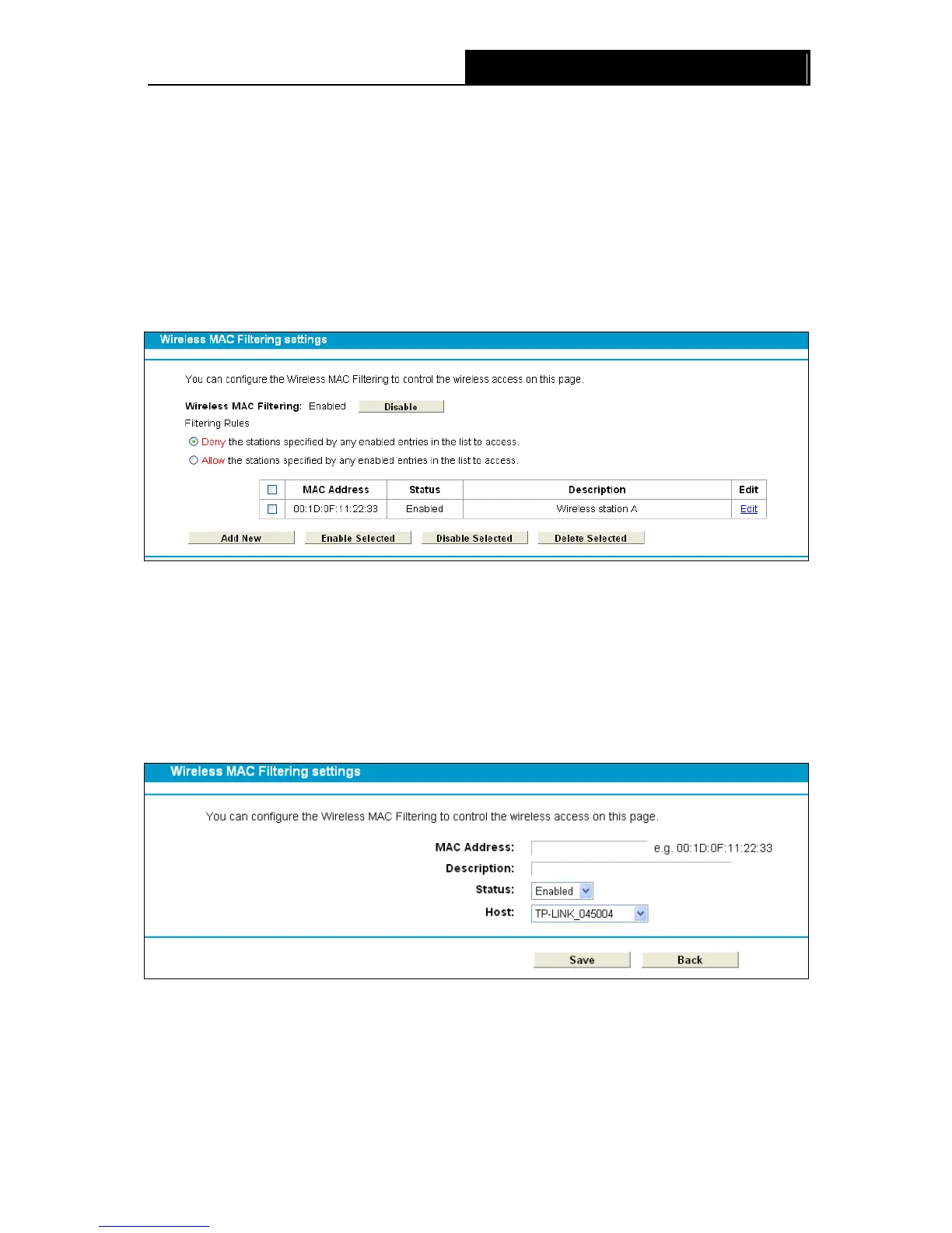 the Wireless MAC Filtering function, shown in Figure 4-40.