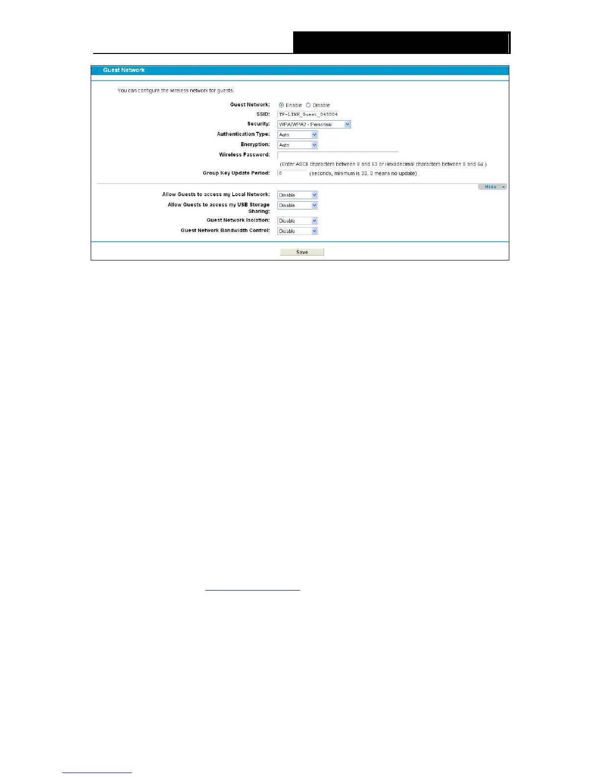 You can enable or disable Guest Network. When you enable this function, you could set wireless