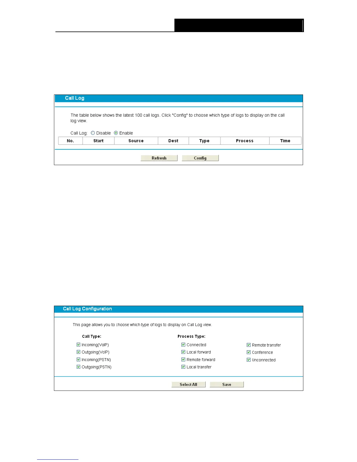 Call Log: Check the Enable if you want to make this function take effect; otherwise check the