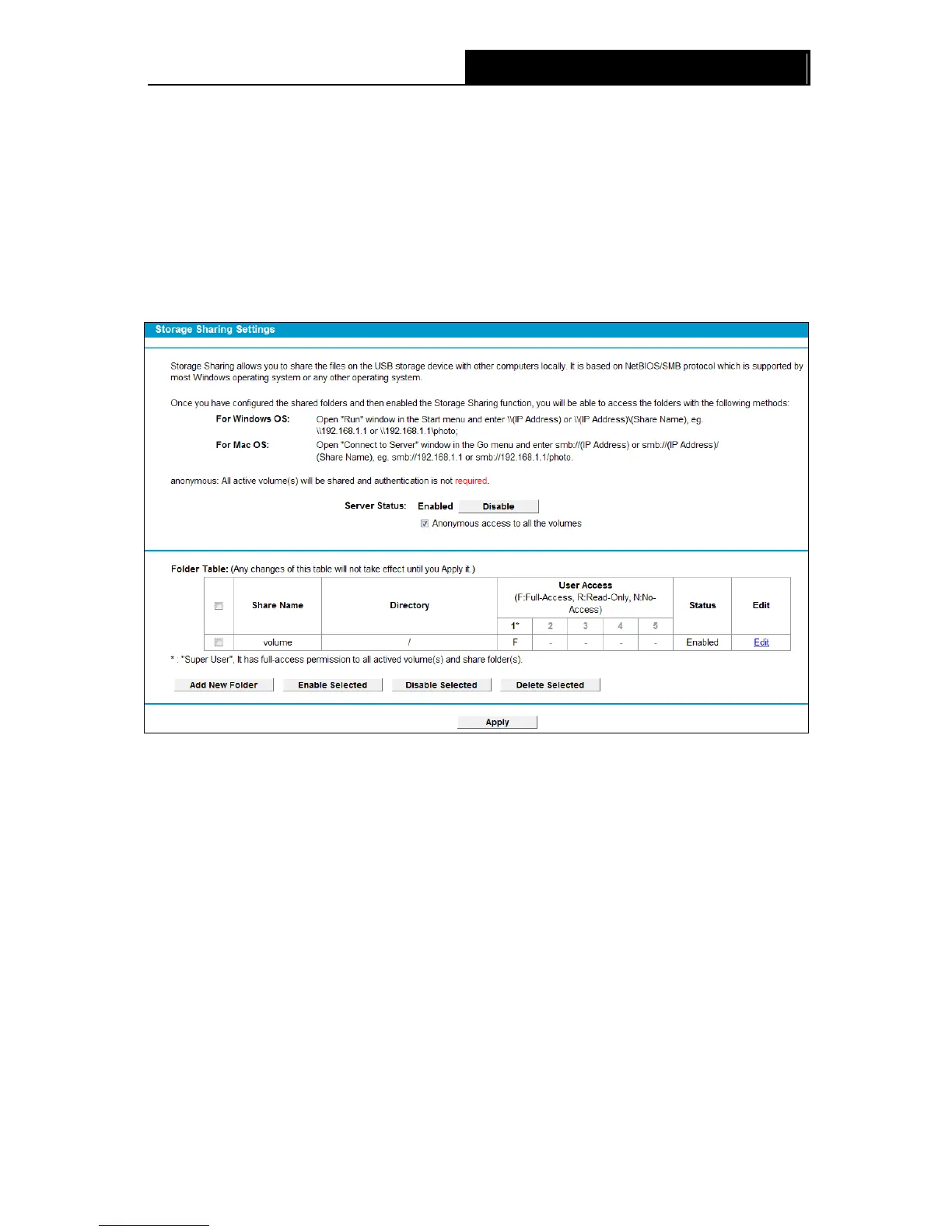 Anonymous access to all the volumes: If this function is enabled, users can access all