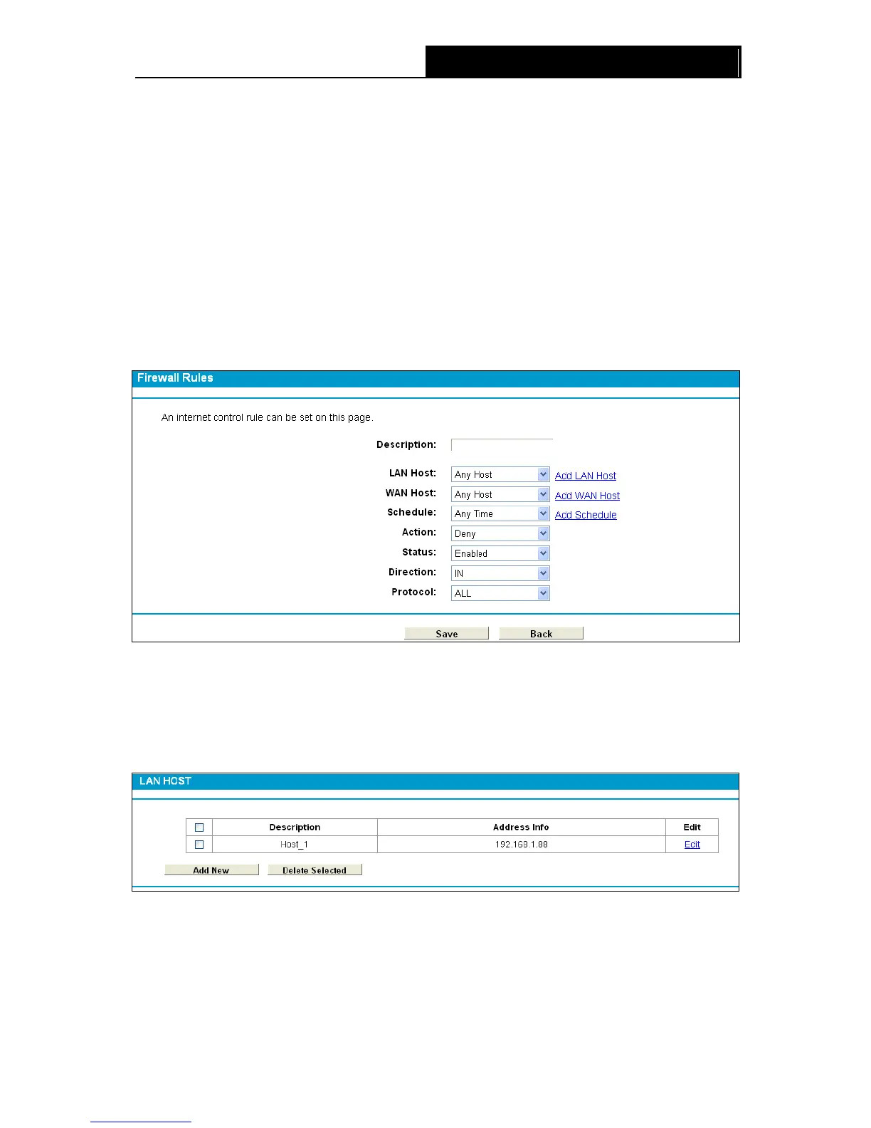 “LAN Host”, and then you can view and set a Host list in the screen