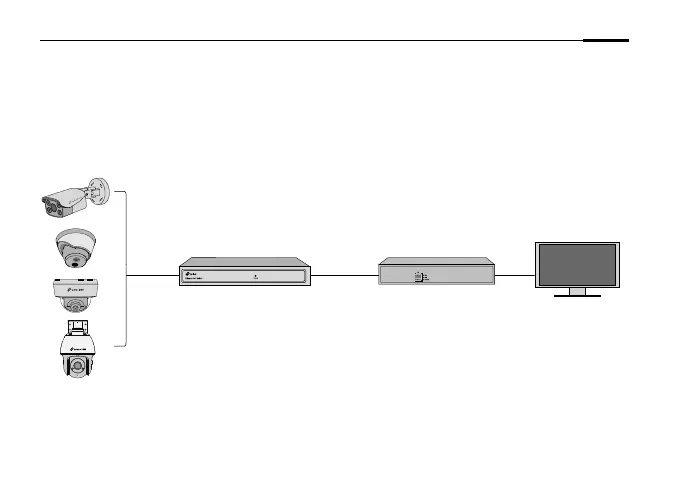 Pievienojiet kameras vienam tīklam ar NVR (Kā parādīts augstāk).