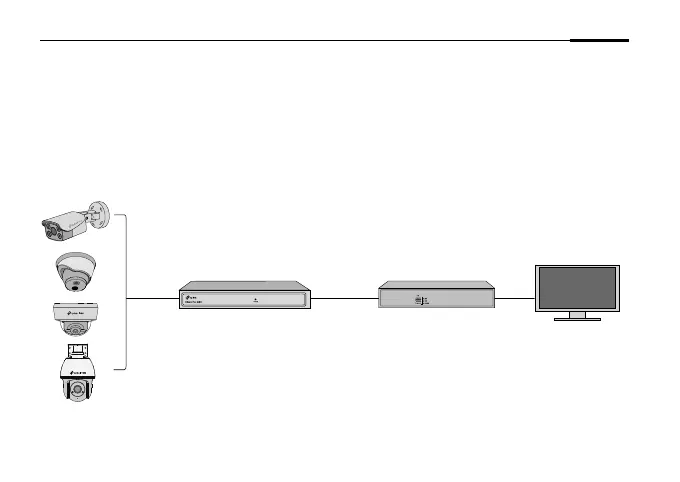Kamery pripojte dotej istej siete ako NVR (ako je toznázornené naobrázku vyššie).