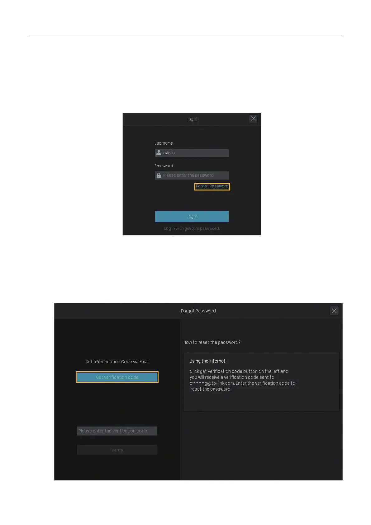 • If your NVR is connected to the internet, click Get Verification Code and you will receive a