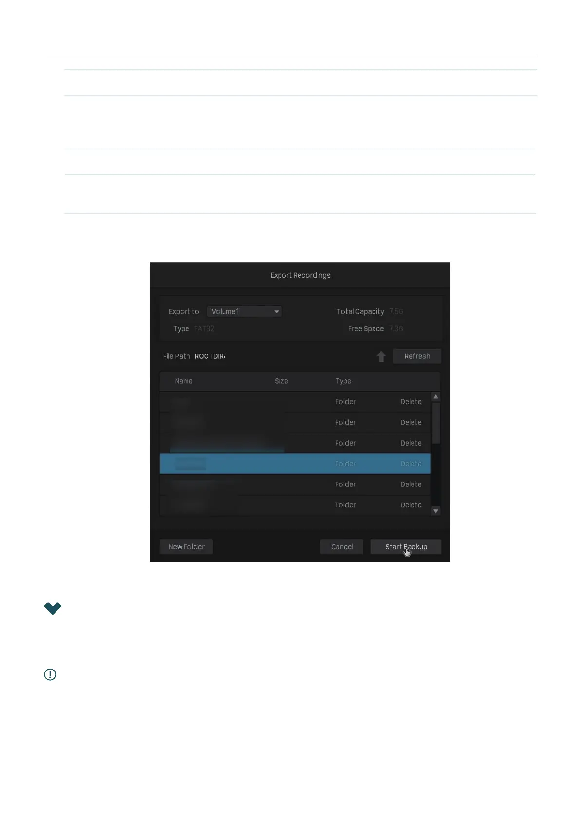 10. Select the folder or create a new folder and click Start Backup to export the files to your external