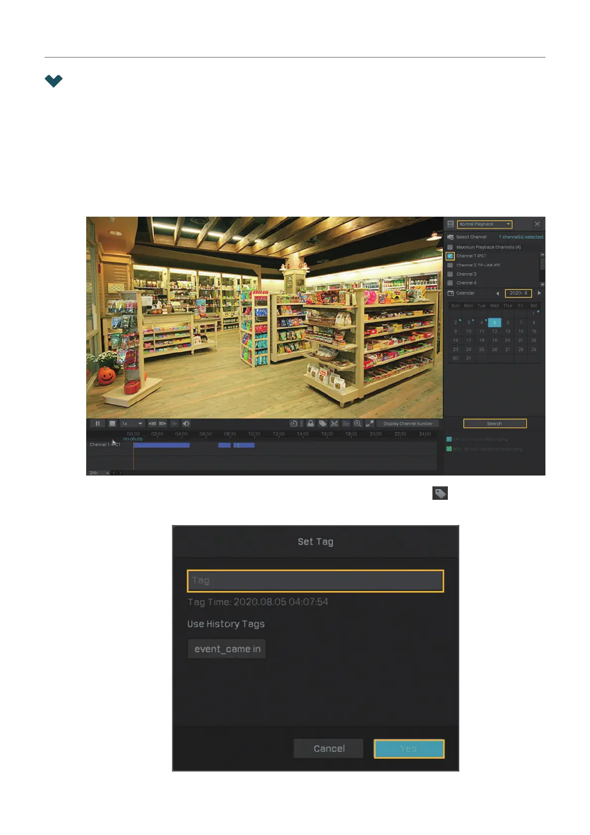 Tags can be used to mark and search recordings. Follow the steps below to add tags and play recordings