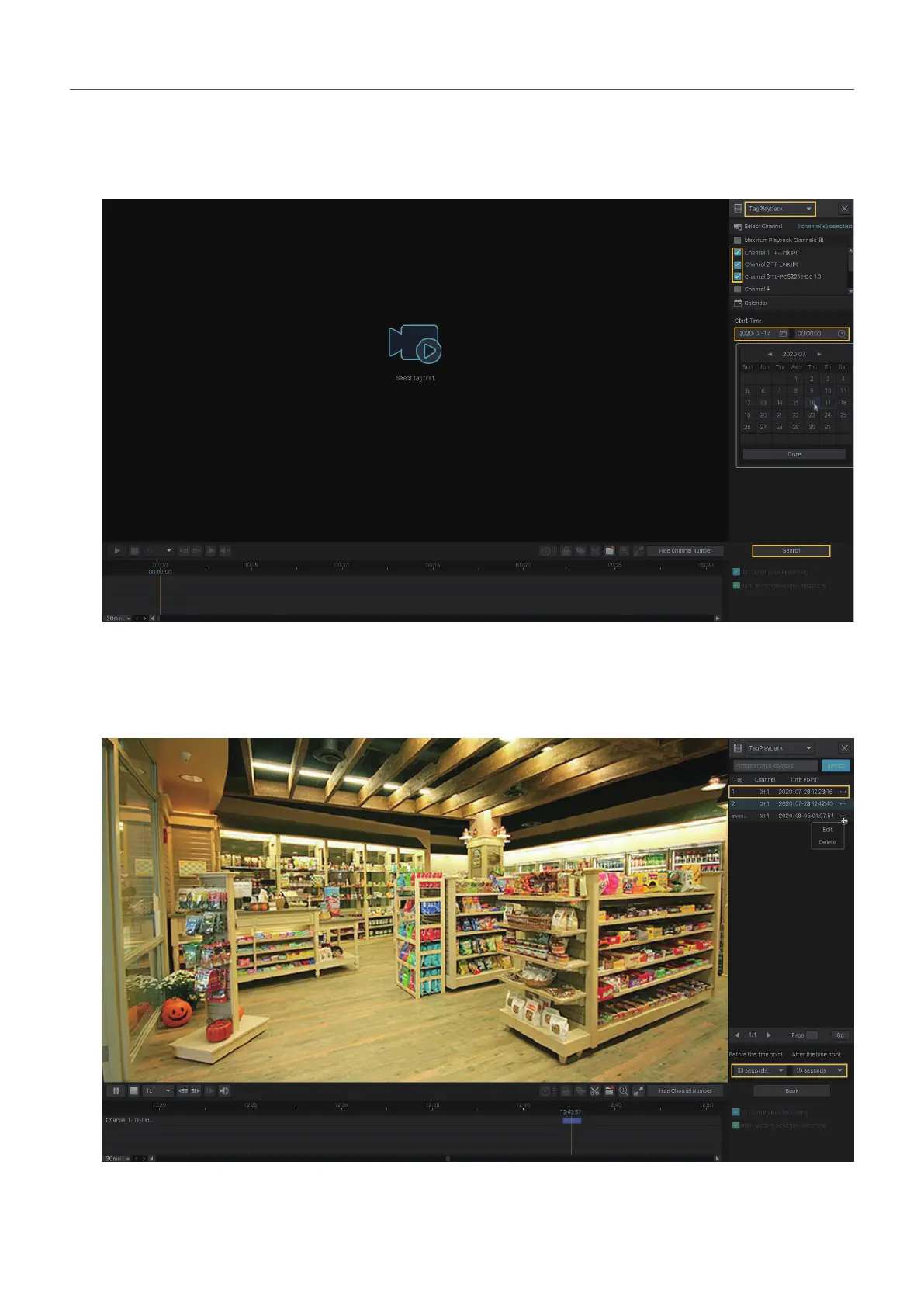 The recording files with tags are listed on the right panel. Specify the time range before and after
