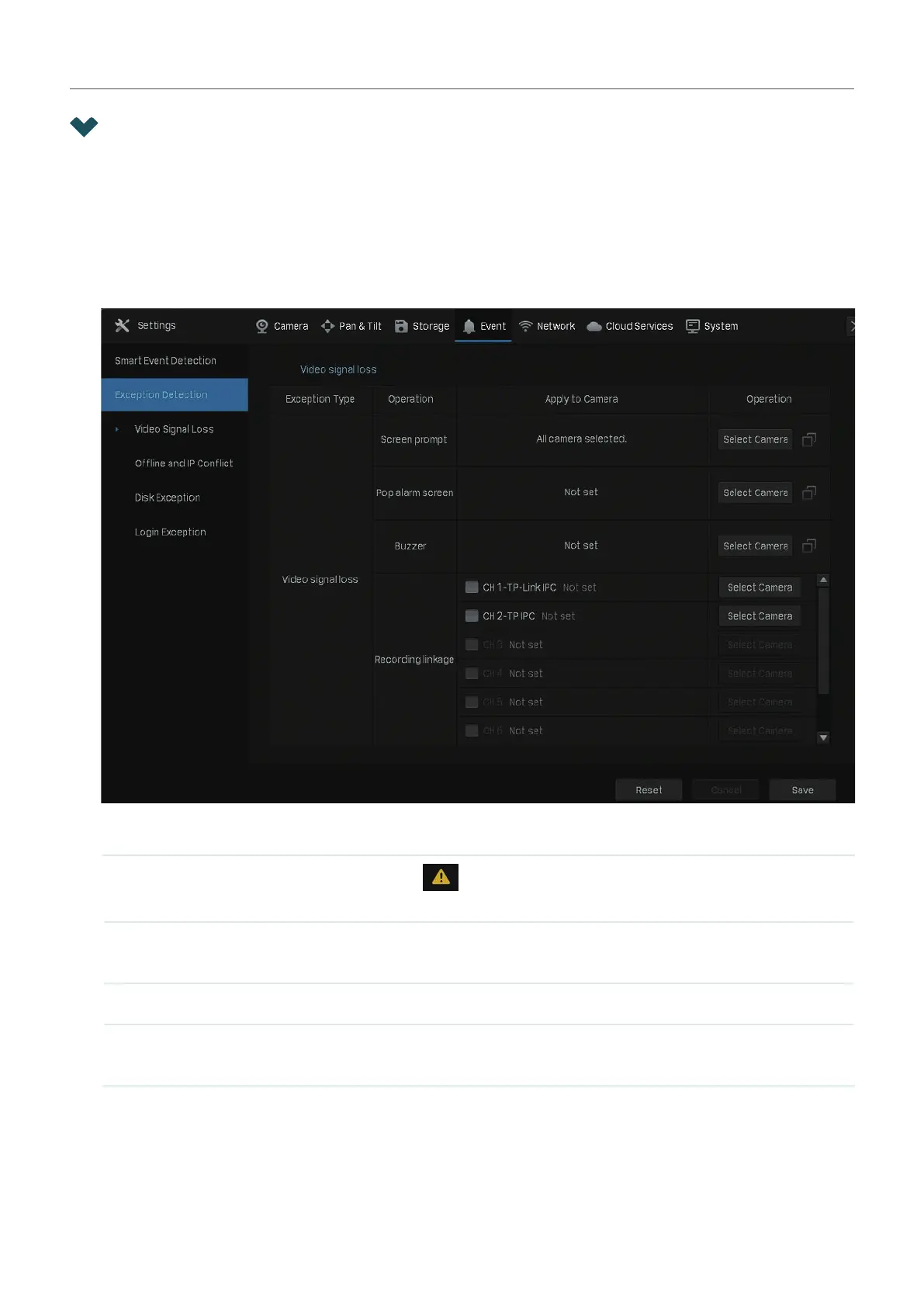 Exception Detection > Video Signal Loss.