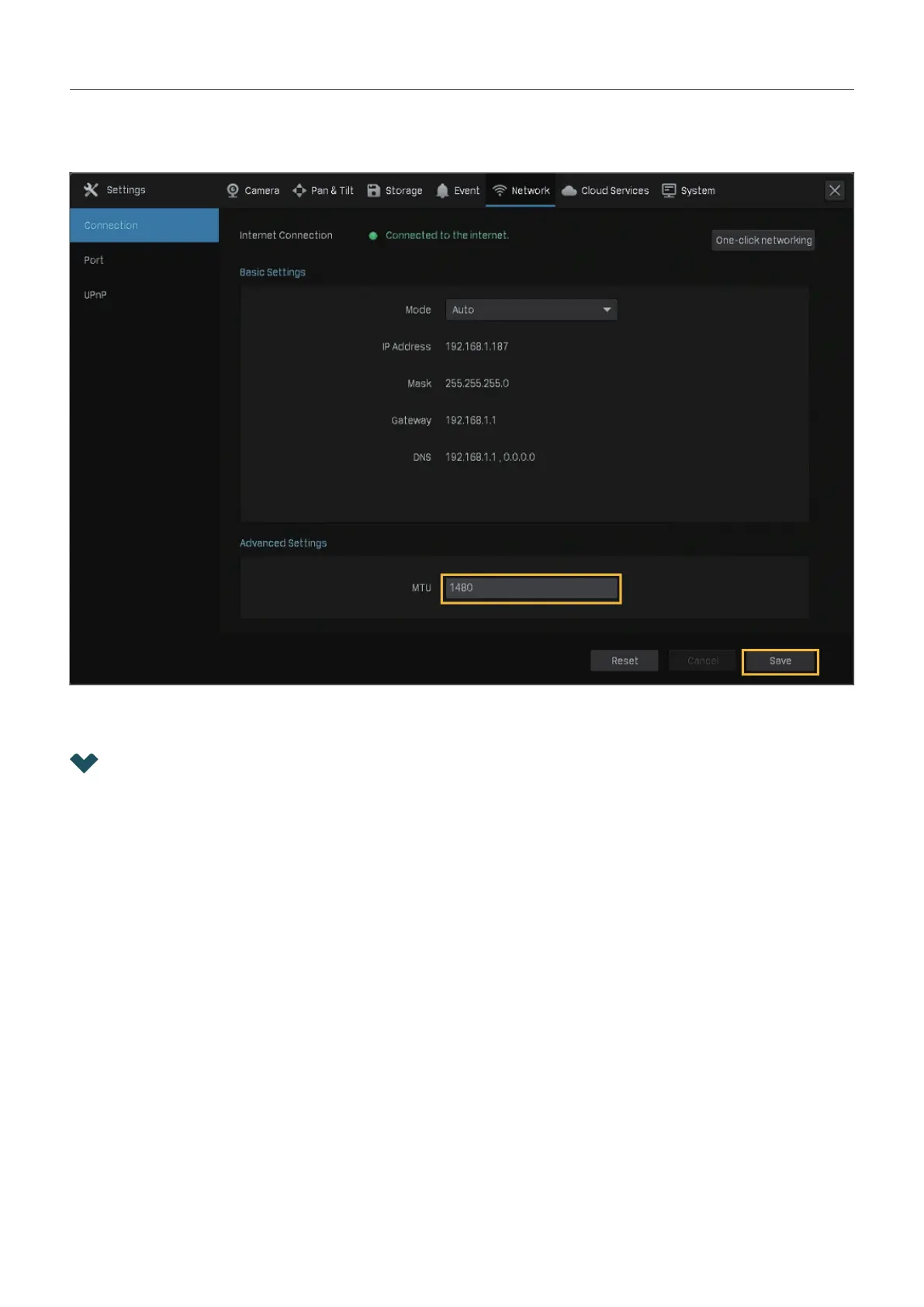> Connection. Specify MTU and click Save.