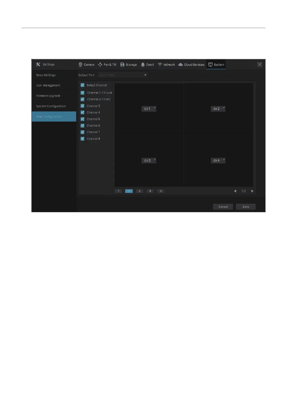 region on the screen. Click a square and click the checkbox of a channel to rearrange the channel