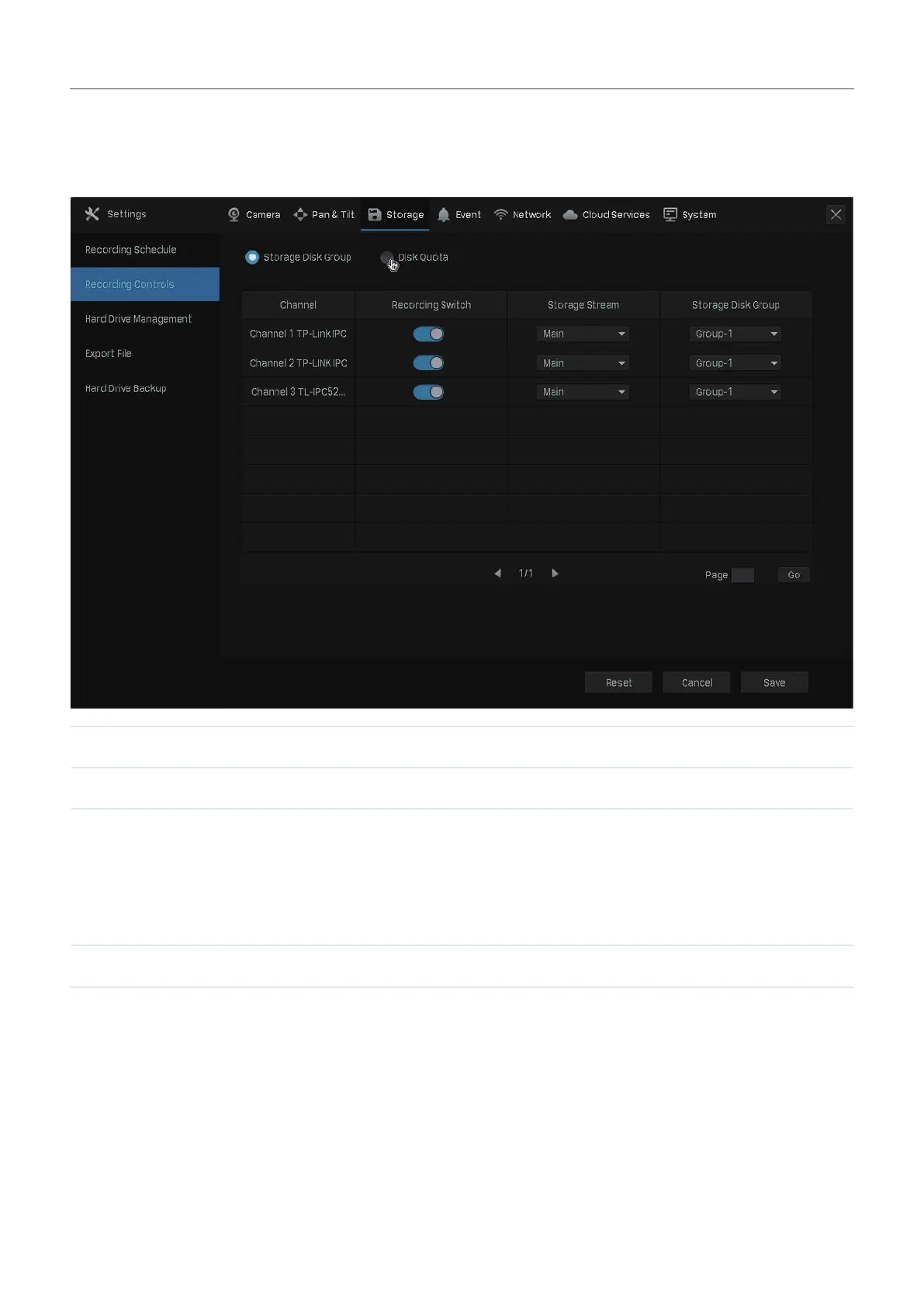 menu. Then go to Storage > Recording Controls and select Storage Disk Group. Click Save after you